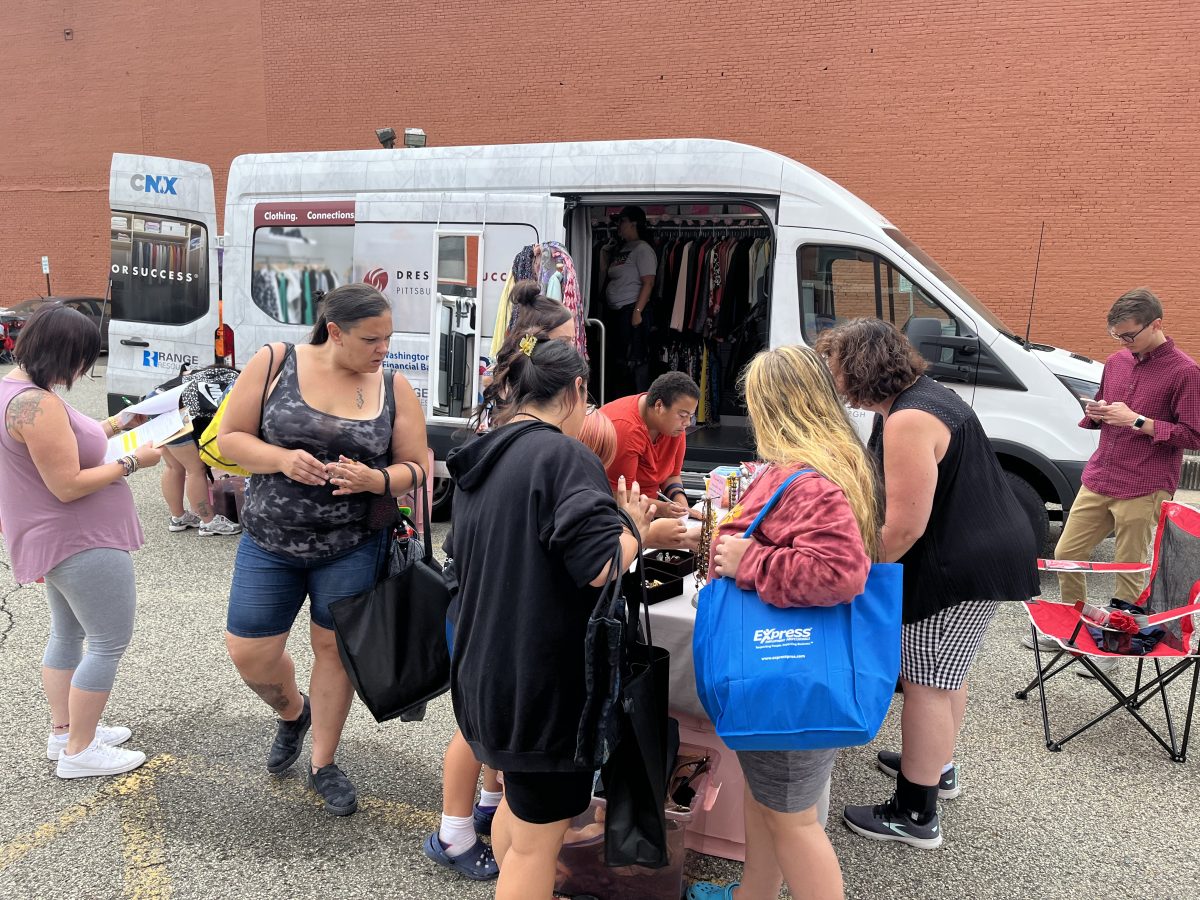 Dress for Success Pittsburgh set up shop in a parking lot, and dozens of women visited the van, which was filled with women’s clothing and accessories.