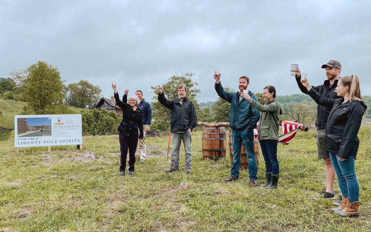 Monday morning’s rain dissipated as a large crowd gathered along Racetrack Road in North Strabane Township to celebrate the groundbreaking of a much-anticipated Mingo Creek Craft Distillers’ project, the Liberty Pole Spirits whiskey distillery campus.