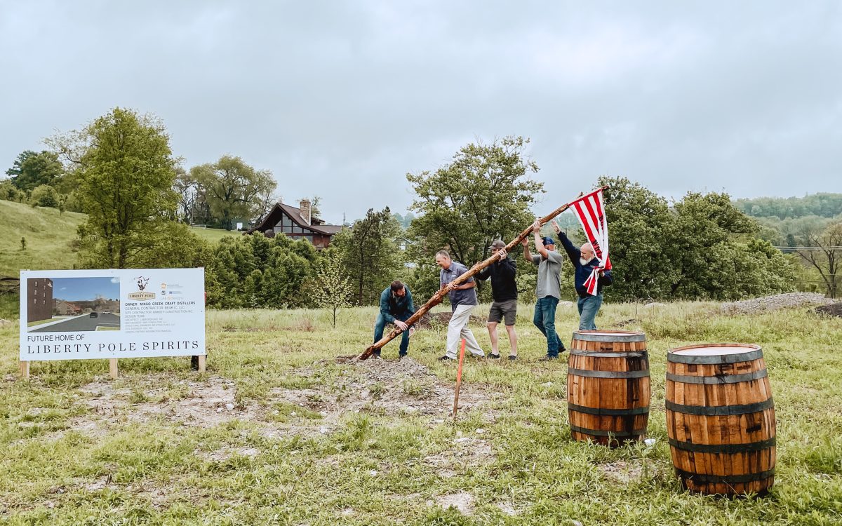 Team members then hoisted a heavy wooden pole, raised the American flag and led a chorus of “Huzzahs!” in lieu of a traditional groundbreaking. The distillery campus is expected to open to the public in the first quarter of 2023.