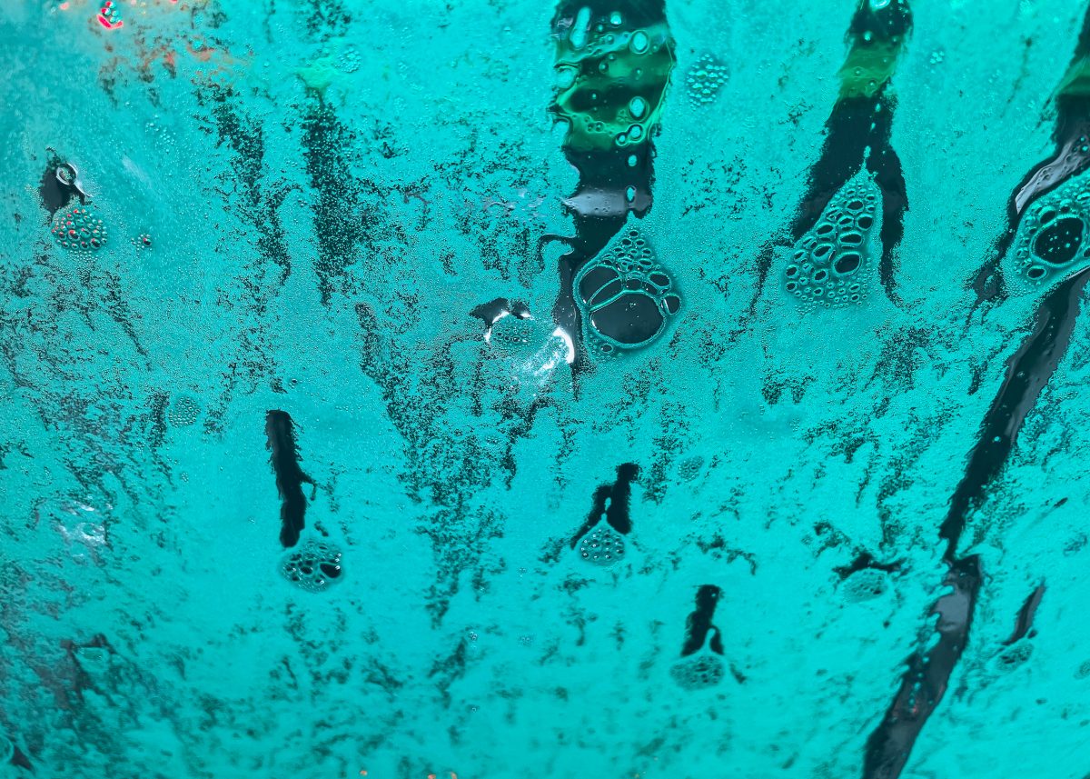 Water and soap will resemble blood on the windshield.