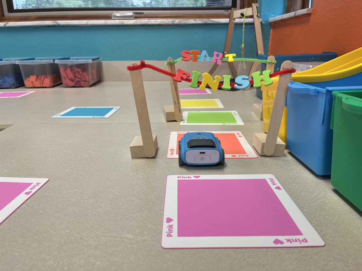 Magyar rotated through a few stations, including a couple involving small robots to teach kids basic coding skills. For example, students in kindergarten and first grade learned to program Bee-Bots to travel from one place to another on a map.