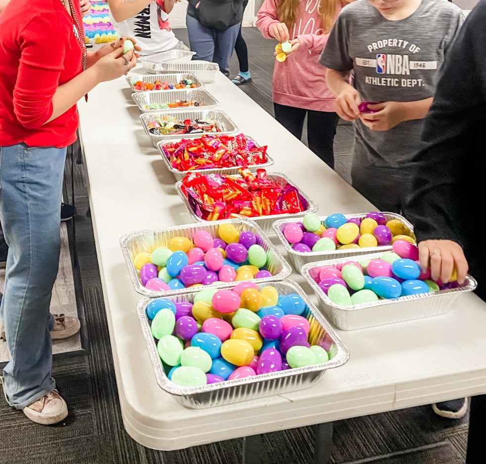 In the weeks leading up to Easter, the church youth group takes Egg My Yard orders from families in the South Hills area (based on your location, the church does accept orders to homes outside that area; inquire online) and spends Wednesday evenings stuffing hundreds and hundreds of colorful Easter eggs with candy, stickers and other goodies.