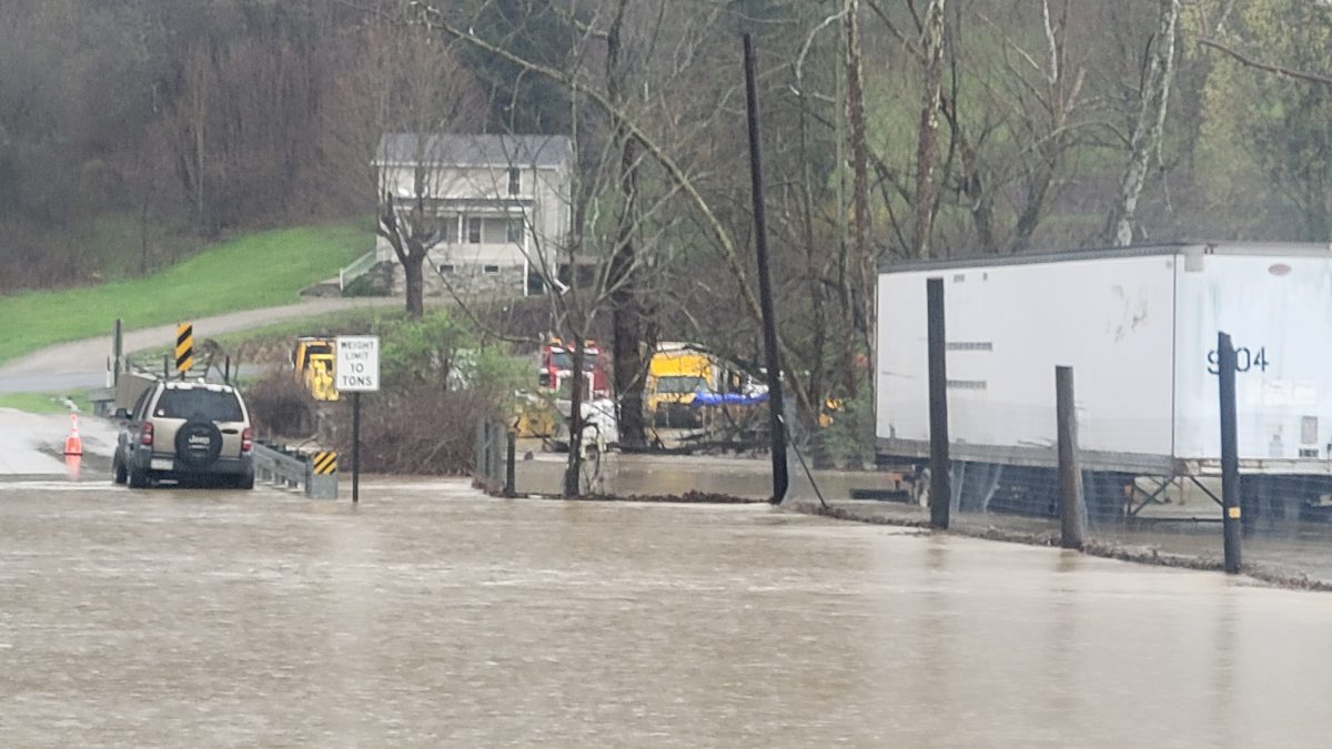 Officials were waiting for water to recede to determine if a flooded bridge in Deemston Borough sustained damage, and Coleman said the department received reports of some roads being washed away.