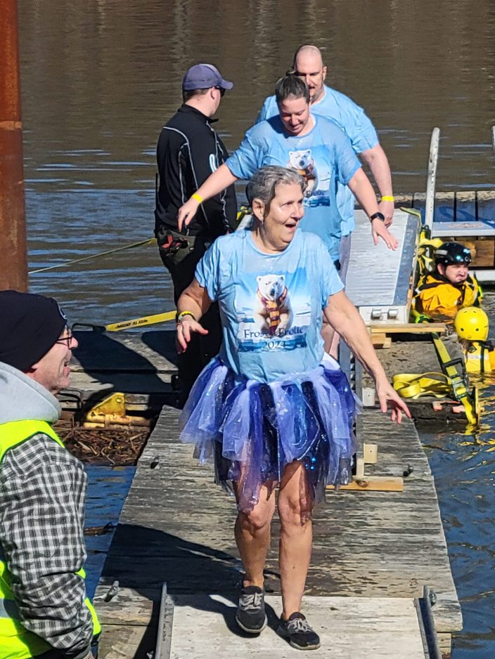 Jumpers plunge into frigid Mon River for Frosty Frolic