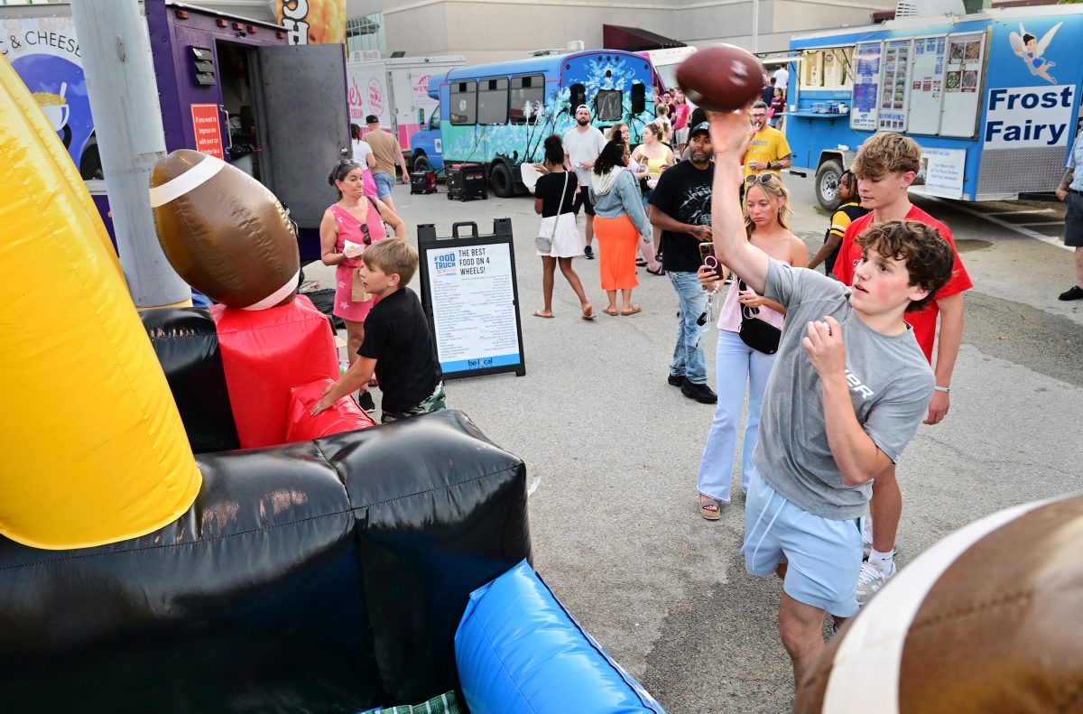 Drew Grasser of Canonsburg takes a turn at the football toss at the Food Truck Festival on May 24.