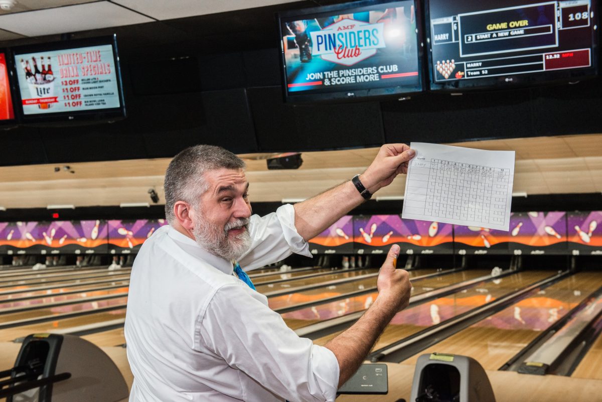 On my final roll, I knocked down eight pins, entered “108” on the sheet and turned to look at the final tally on the big screen.