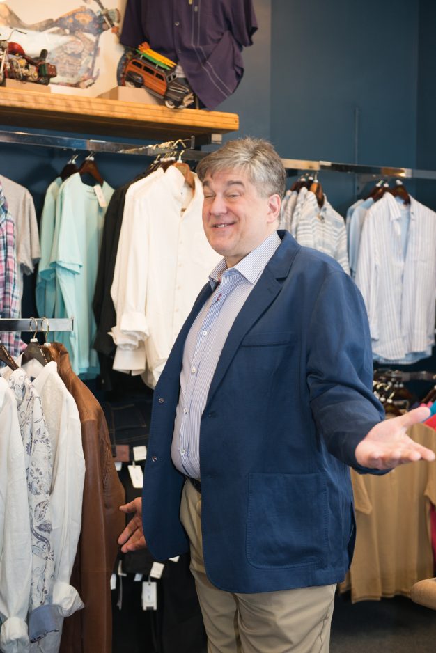 I visited Larry at his specialty store, Enzo Nico in Mt. Lebanon, to learn a little bit more – that is, anything at all – about men’s fashions. As a three-decade veteran of the men’s clothing business, he ended up giving me quite the education.