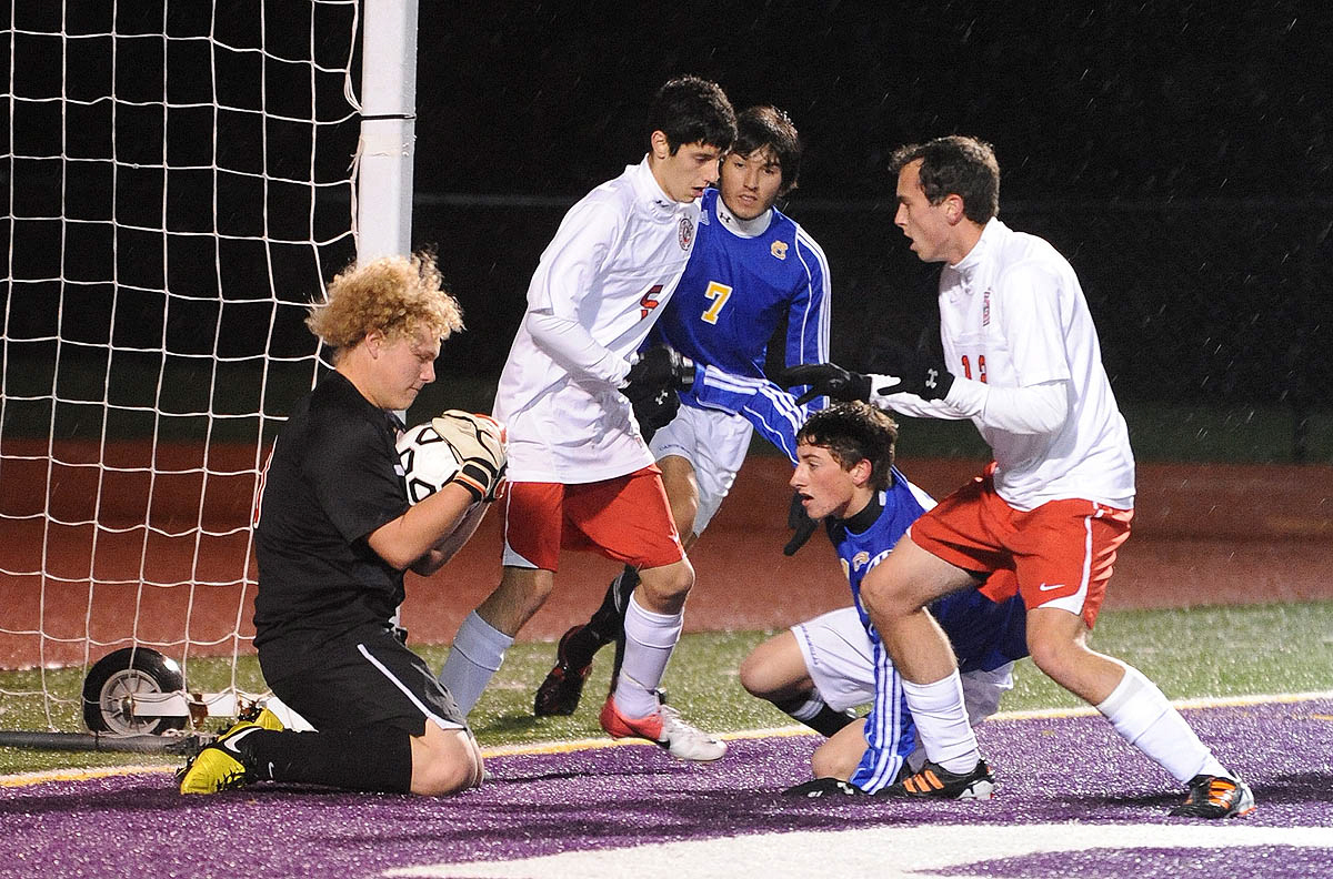 PITTSBURGH – When the Canon-McMillan High School boys soccer team was handed the 13th seed for the WPIAL Class AAA playoffs, it’s no secret the Big Macs thought they deserved better, with four one-goal losses to the tournament’s top two seeds, Peters Township and Upper St. Clair.But after an improbable run through the playoffs, turns out it probably was an argument worth listening to.Jake Wilcox and Ivan Viveros scored second-half goals to lift Canon-McMillan to a 2-1 victory over rival Peters Township in the WPIAL semifinals at Baldwin Wednesday night.”When you’re seeded as low as we were, the only place you can go is up,” Wilcox said. “The motivation of everyone telling you that you can’t do it just makes you want to do it that much more.”Then we just did it.”The win means the Big Macs will play for the WPIAL title against No. 2 Upper St. Clair Saturday, site and time to be determined.Canon-McMillan will try to become the first local team other than Peters Township to win WPIAL gold since Trinity in 1974.Canon-McMillan, which has already won the most games in program history (17), will now accomplish two more firsts in playing for WPIAL and PIAA gold.”We told the kids that we couldn’t have written a better story for ourselves,” head coach Larry Fingers said.The Big Macs controlled play throughout much of this one, dominating the first 70 minutes before Sean Baxendale scored from about eight yards to give the Indians (14-2-2) life in the 74th minute.”They beat us to the ball consistently for the first 70 minutes of the game, and that won the game,” said Peters Township coach Bob Dyer, whose team will have to beat Pine-Richland on Saturday to reach the PIAA playoffs. “For the last 10 minutes we played with a sense of urgency, the same sense of urgency that they played with for the first 70 minutes.”Wilcox put Canon-McMillan on the board in the game’s 42nd minute after the rebound from his own shot hit the far post and bounced right back to him. Given a second chance, Wilcox slid a shot in the right corner of the goal.”It hit the post, came back, and I saw an open goal and thought, ‘This can’t be happening,’ ” Wilcox said. “I just slid it by. It’s never been that easy. I mean, it wasn’t easy, but I’ve never seen a goal that open.”Viveros made it a 2-0 game when he finished a cross in the 47th minute.”It was on a throw-in,” Viveros explained. “They missed it; I saw my chance, and I used the inside of my foot to push it through.”The win comes after a pair of 1-0 losses to Peters Township this season for Canon-McMillan – one that came on an own goal.After time expired, Canon-McMillan (17-4) drenched Fingers with water and went through several celebratory rituals. They were even told they could show up for school at 11 a.m. today.”We felt confident coming into the game,” said Fingers, who’s been growing a playoff beard. “Now we have to regroup and hopefully not spend all of our energy celebrating this win.”