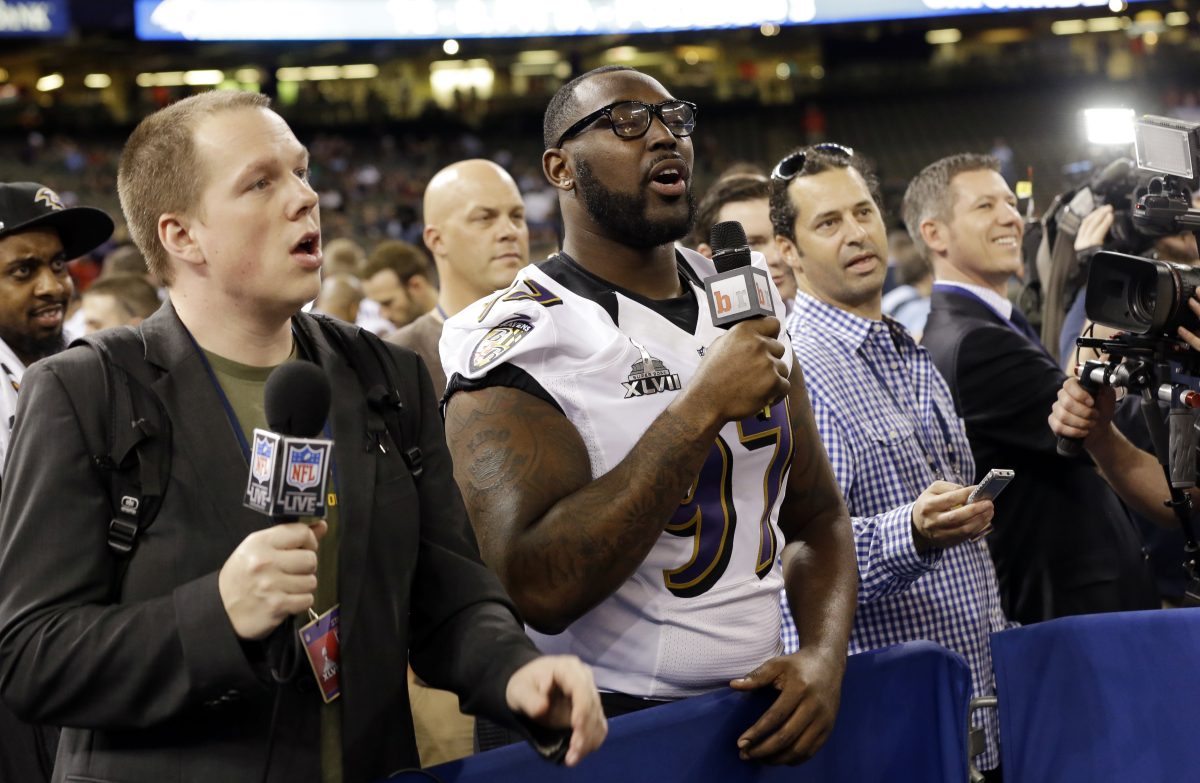 Onlookers laughed, satisfied that the Baltimore Ravens’ mischievous linebacker had properly punctuated the frenetic, free-for-all known as Super Bowl media day.