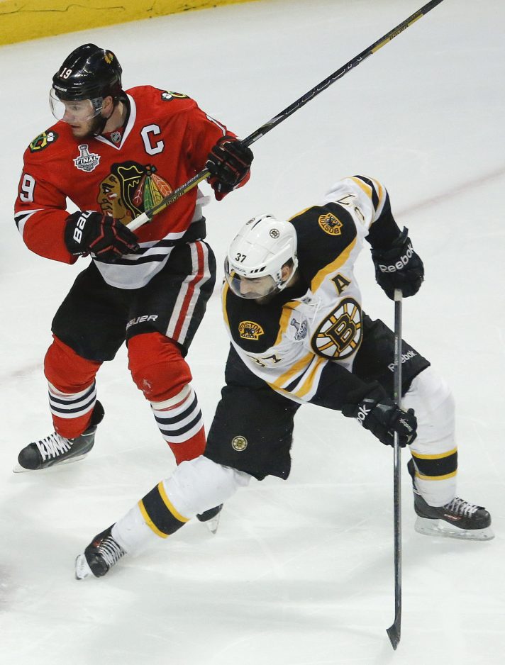 Toews, who won the Selke Award as the NHL’s top defensive forward – Bergeron was a finalist – missed the entire third period after a shot to the head from Bruins defenseman Johnny Boychuk.