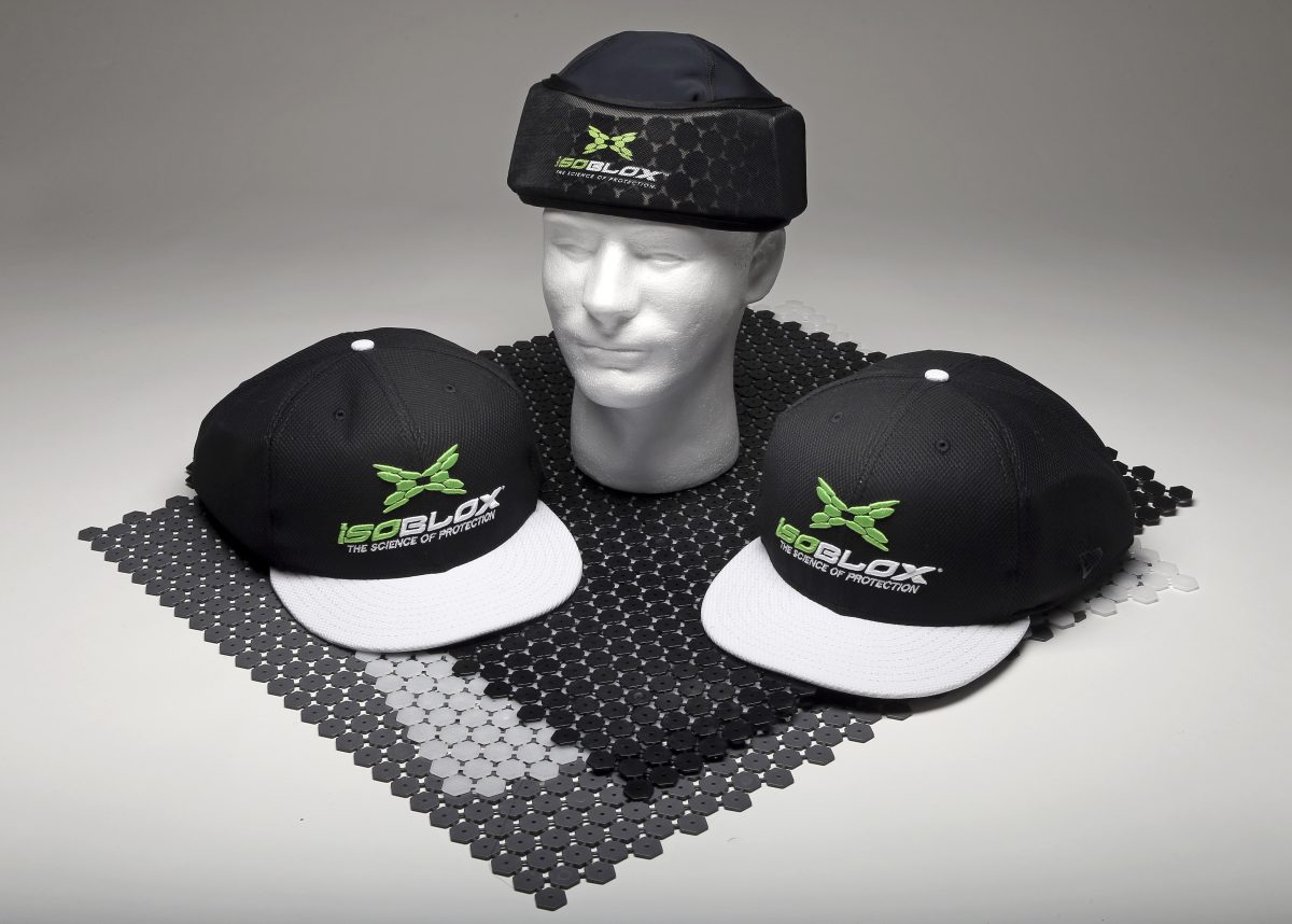 The safety plates made by isoBLOX are sewn into the hat and custom fitted. They weigh an extra six to seven ounces – a baseball weighs about five ounces, by comparison – and offer protection to the forehead, temples and sides of the head. They’ll make the hats about a half-inch thicker in the front and around an inch wider on the sides.