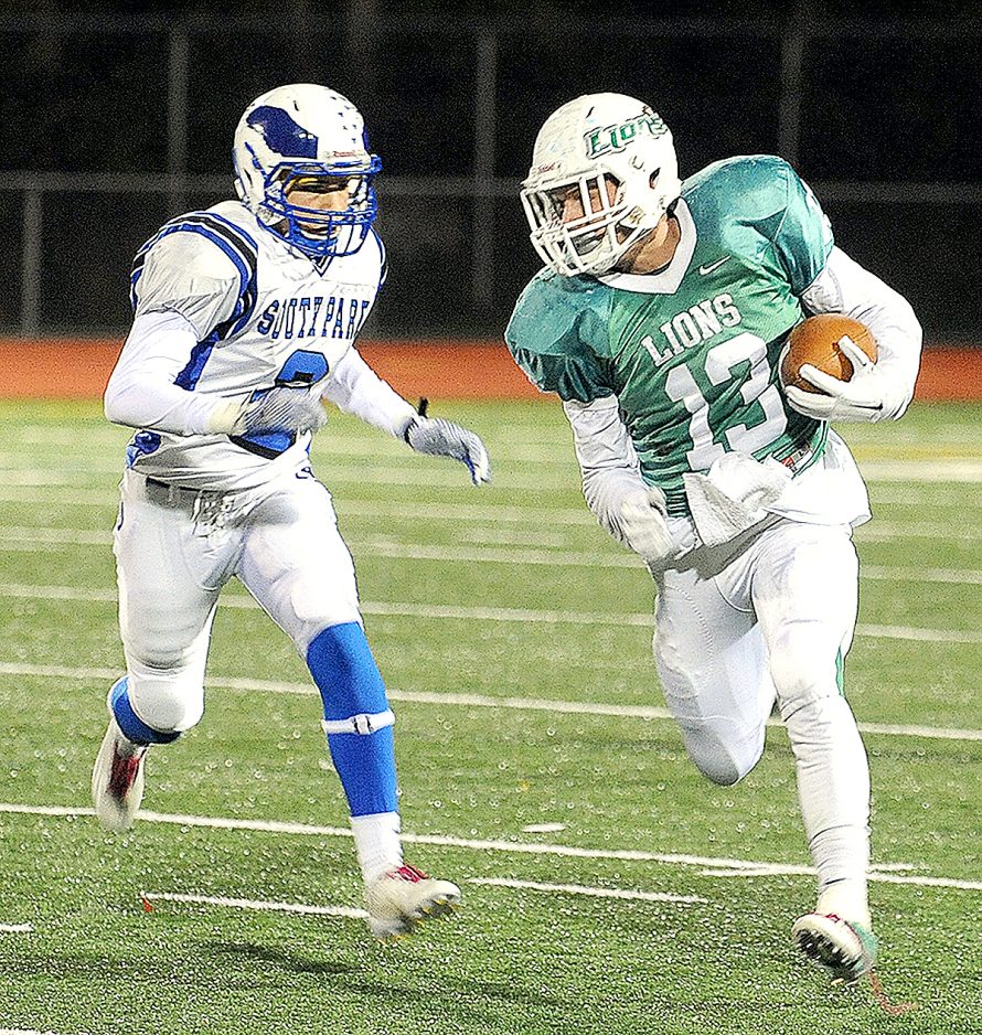 South Park’s defense held the Lions (11-0) in check for much of the game, forcing a couple early turnovers on downs. The Eagles (8-3) did concede the first 13 points of the game, but behind the strong running of Adam Staudt and Nick Scholle, South Park scored 21 unanswered points. Scholle gained 150 yards on 20 carries while Staudt rushed for 122 yards on 23 attempts.