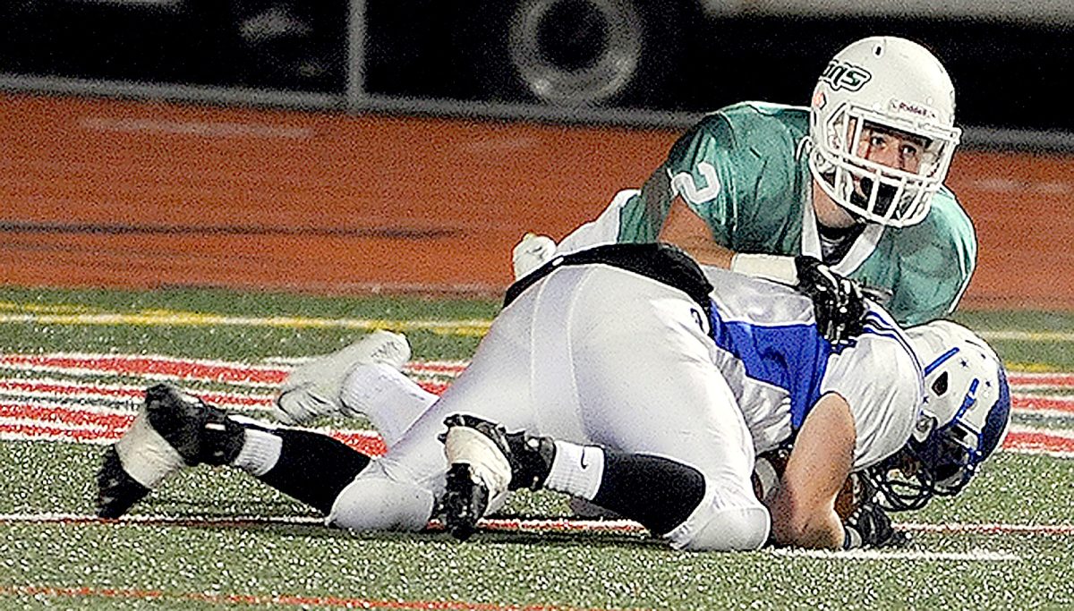 A little luck helped. The Eagles had been getting some of the bounces, but South Fayette got a big one to tie the game late in the third quarter when it trailed 21-13. Brett Brumbaugh’s pass to Dan Trimbur bounced off Trimbur’s shoulder, but straight up into the air and stayed in Trimbur’s path where he was able to reel it in for a 40-yard touchdown.