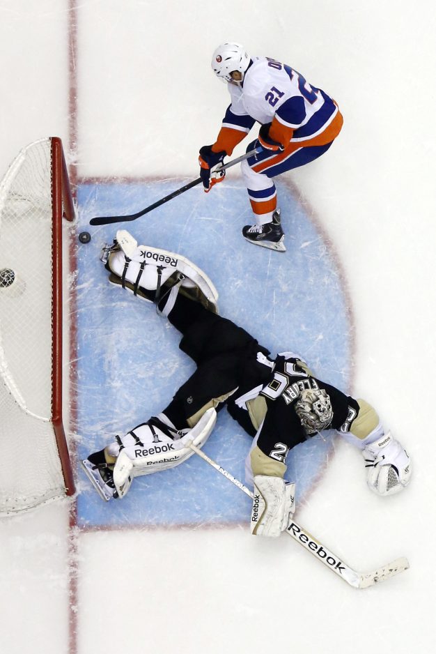 Sidney Crosby and New York’s Frans Nielsen scored in the second round and Islanders goaltender Chad Johnson stopped Brandon Sutter. Okposo deked to his forehand, slipping a shot that hit off Marc-Andre Fleury’s pad and into the net for the win.