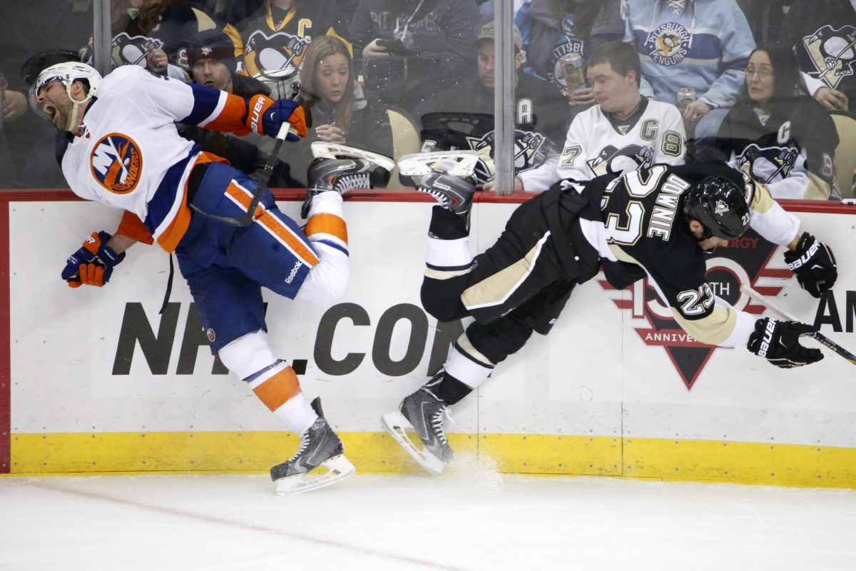 Penguins F Craig Adams is within one of 900 career NHL games. … The Penguins and Islanders will meet three more times this season. … Pittsburgh scratched Simon Despres, while Brian Strait, Matt Donovan and Cory Conacher were scratches for the Islanders.