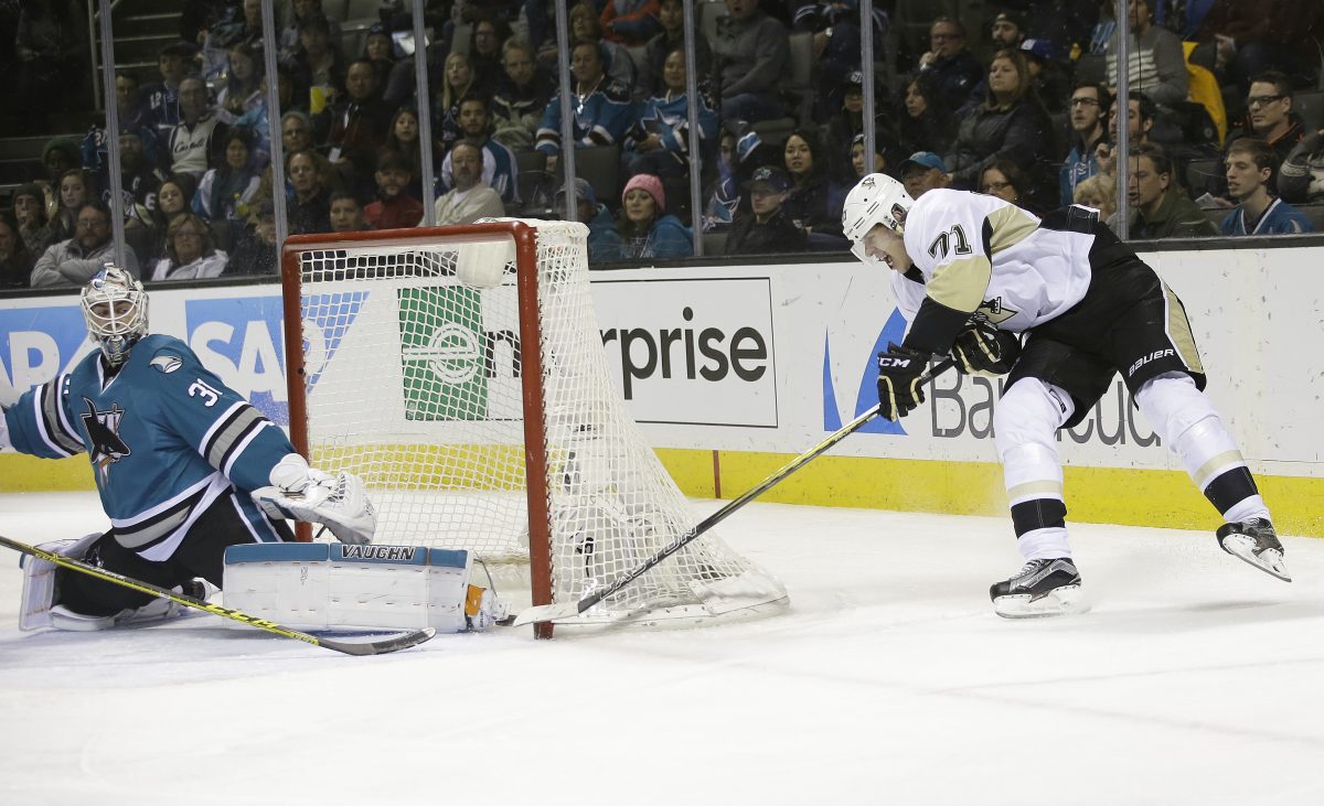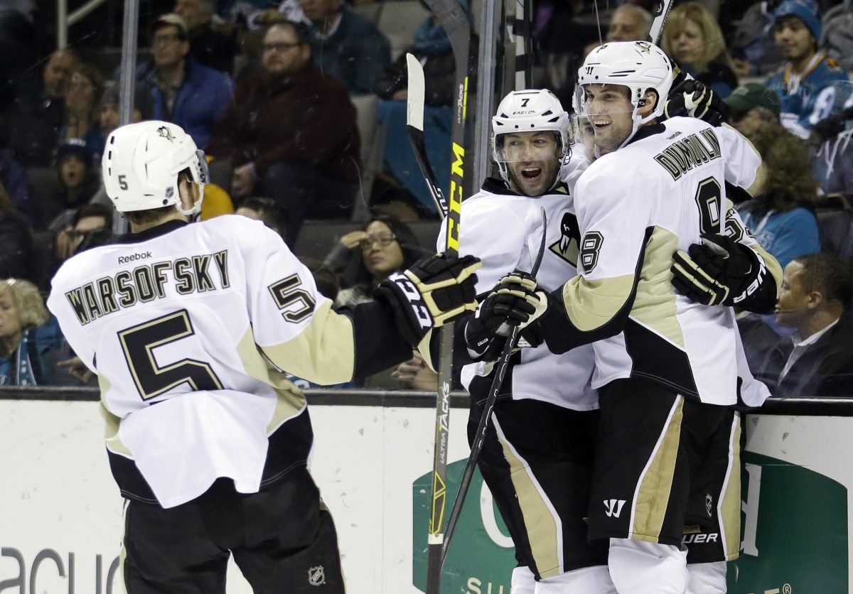 David Perron added a goal and an assist and Matt Cullen also scored for the Penguins, who had lost 10 straight at the Shark Tank. Pittsburgh had gone winless in 12 games here since beating San Jose 5-2 on Oct. 22, 1997, garnering only one tie during the skid.