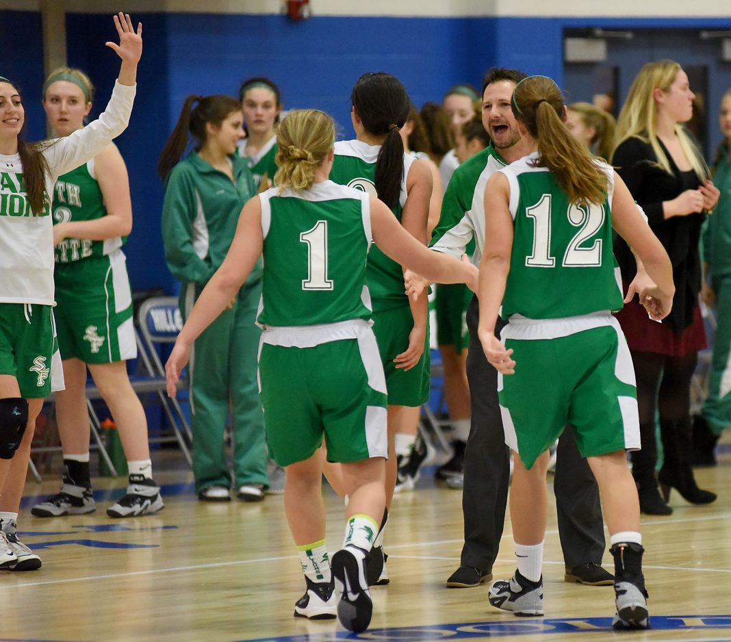 That’s why Matt Bacco knew exactly how he wanted to attack Trinity’s offense, which features two players taller than 6-0, including senior center Mary Dunn, and a pair of experienced guards. Instead of showing the strategy early, South Fayette’s head coach waited until the opportune time. When he finally turned to the half-court trap, the Lions’ quick guards forced turnovers and they capitalized with baskets in transition.