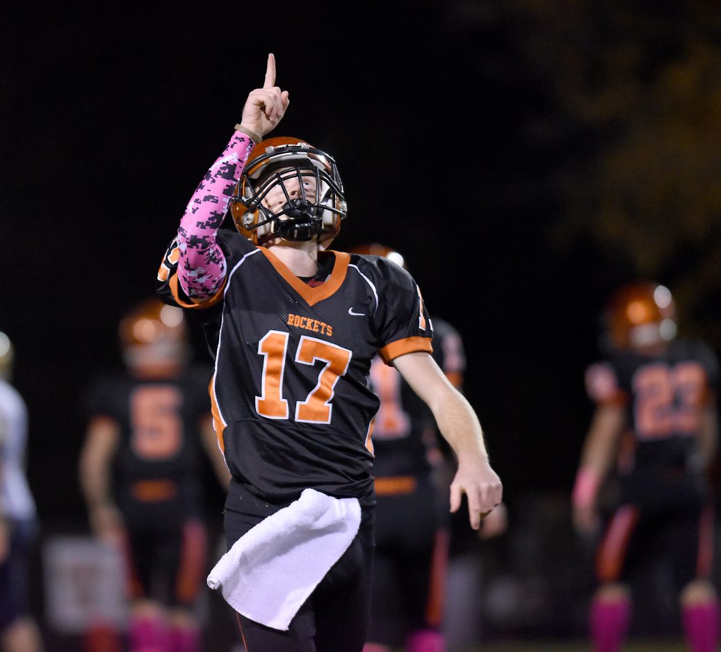 After recovering a B-C fumble, Jeff-Morgan used a little trickery as running back Trevor Kniha hit Nick Teegarden with a 67-yard touchdown on a halfback pass on the Rockets first play from scrimmage.
