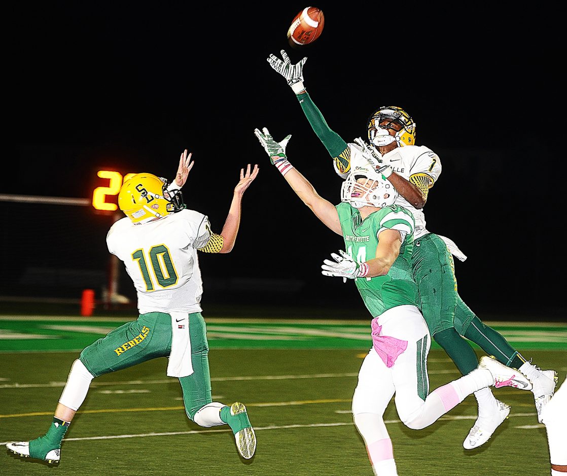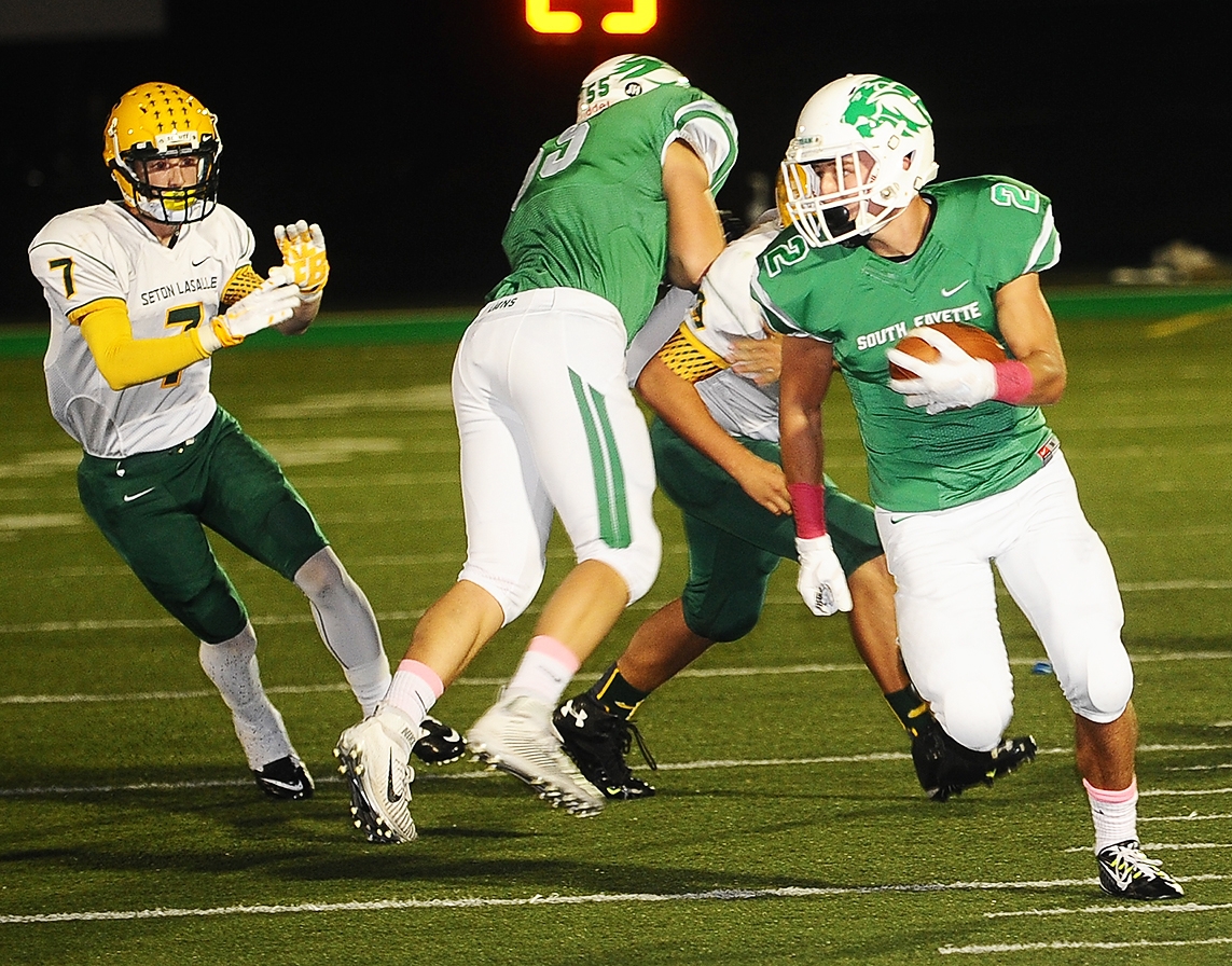 After allowing 184 yards in the first half, including 180 in the second quarter, South Fayette held Seton-La Salle (5-2, 6-2) to 28 yards in the second half and the Lions had two of their three interceptions. Rebels wide receiver Paris Ford, a Pitt recruit, was held to just two catches in the second half.