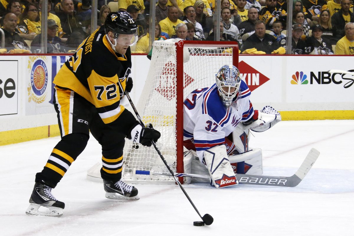 New York’s decided advantage in the net disappeared when Staal’s stick made contact with Lundqvist’s face, forcing Raanta to unexpectedly make his postseason debut. He had little to do until a stretch pass from Hornqvist sprung Crosby in alone late in the second period. The wrist shot zipped over Raanta’s glove and the Penguins were up 2-0.