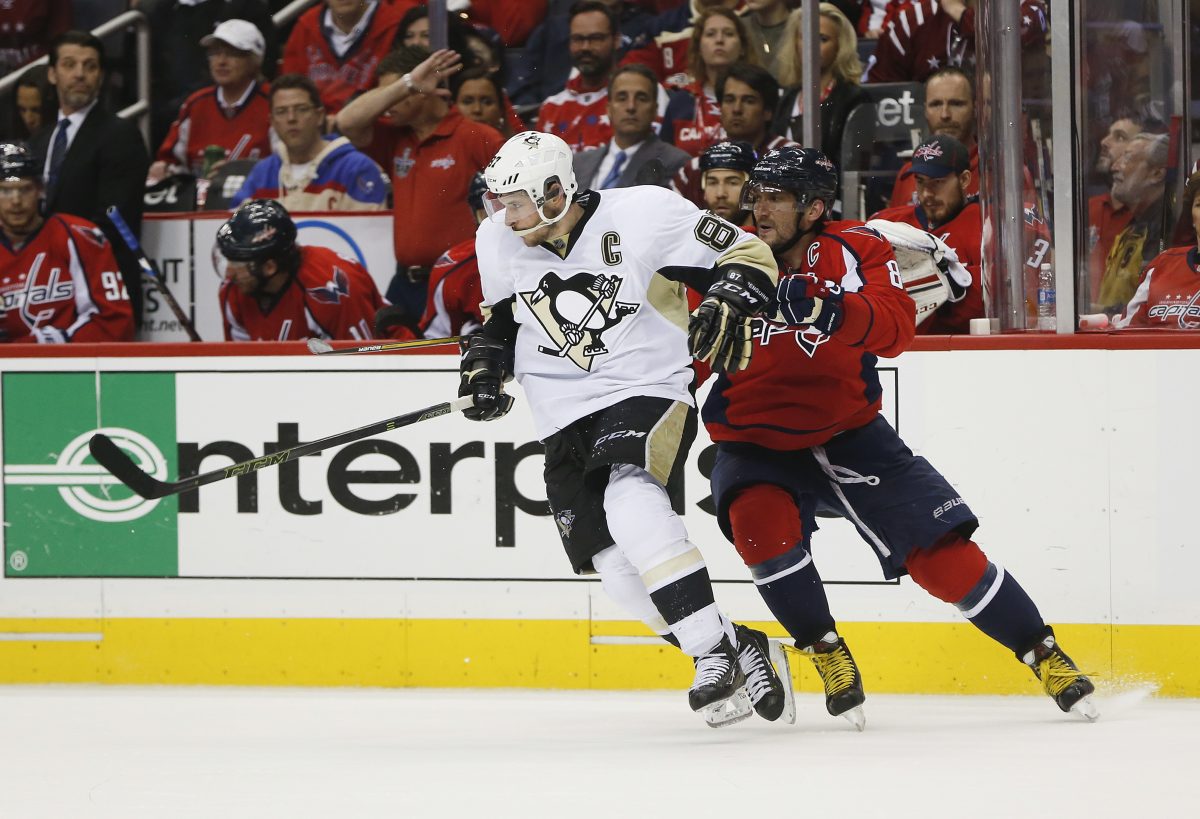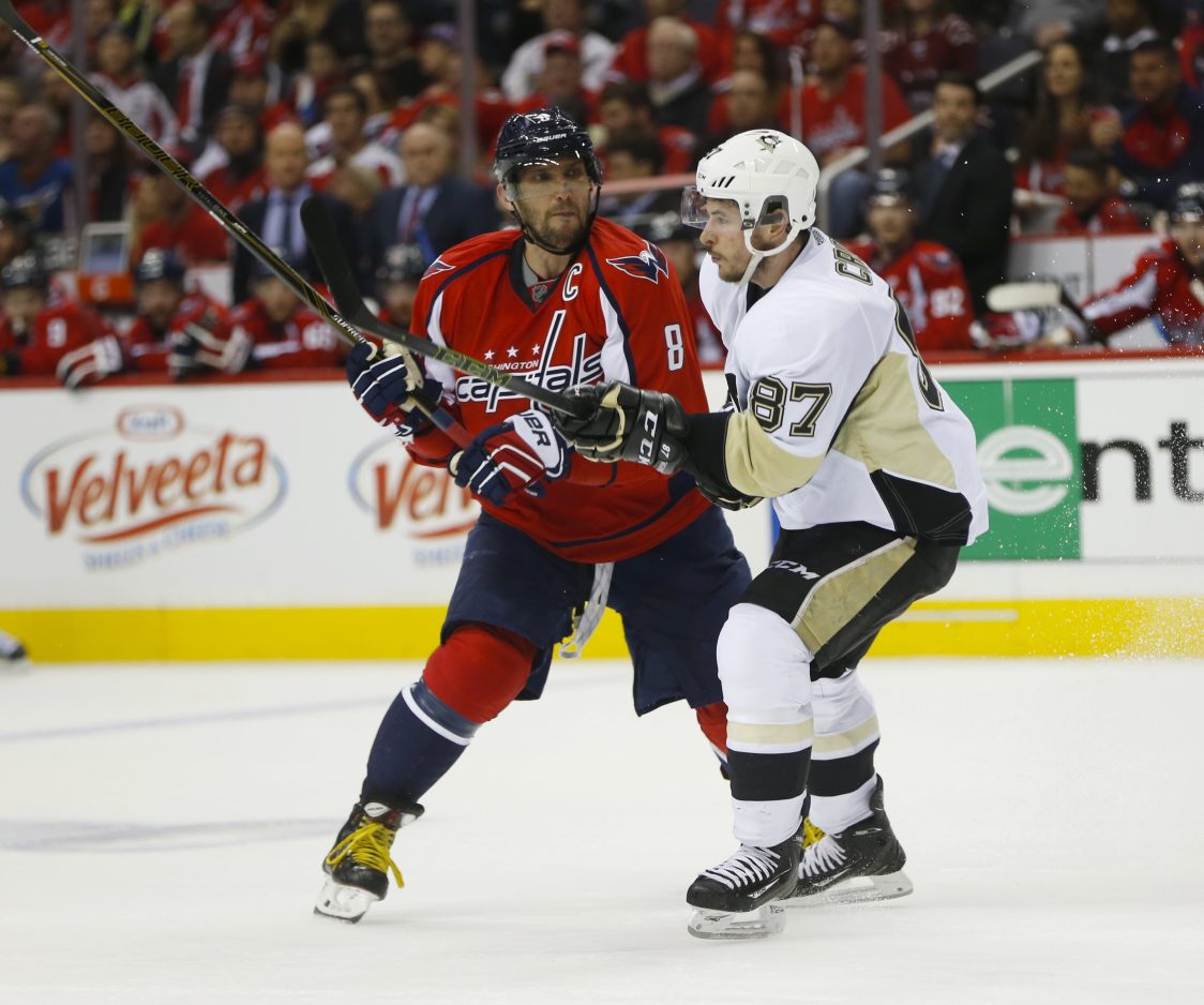 The spotlight was on Ovechkin and Crosby in their first meeting in the Stanley Cup playoffs since 2009. Ovechkin assisted on Oshie’s second goal and was denied by Murray on two breakaways, while Crosby was on the ice for three goals against and won 68 percent of his faceoffs.