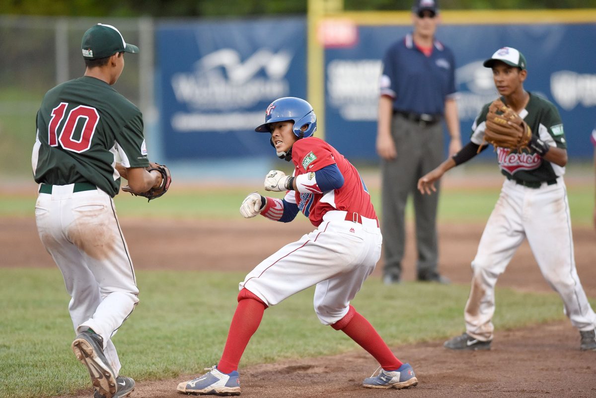 Chinese Taipei scored a pair of runs in the first, including one on a rundown and delayed steal, but Mexico responded with a run of its own in the second when Kai Huang’s throwout attempt of Rigoberto Borbolla went wide and ennded up in center field, allowing Jair Felix to score the first run against the Asia-Pacific Zone champions in this tournament.