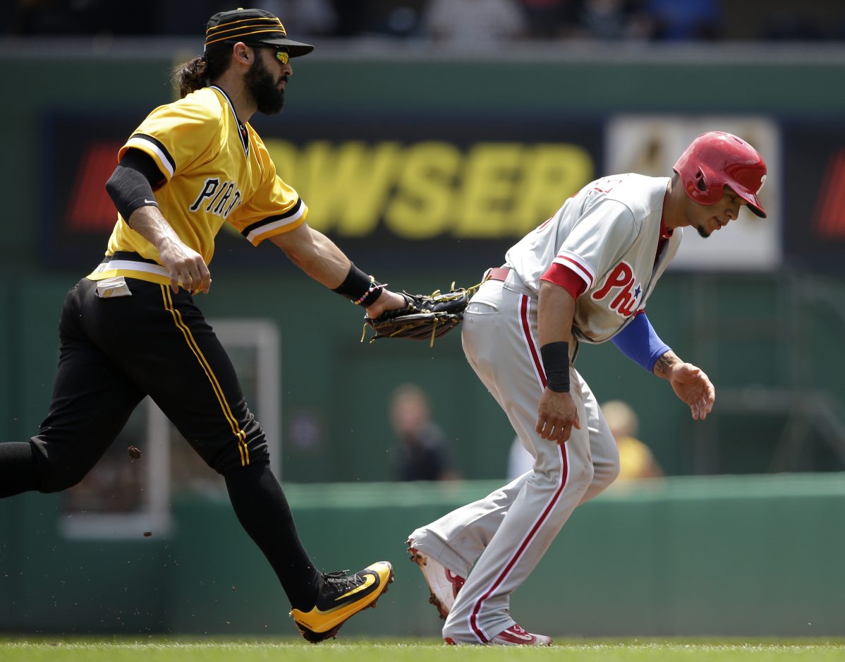 Phillies: Blanco left the game after applying a tag on Gregory Polanco at third base in the fifth inning. Polanco was attempting to steal third. Blanco took the throw from catcher Carlos Ruiz in plenty of time and tagged Polanco, who appeared to make contact with Blanco’s hand or wrist with his foot. Blanco was replaced by Maikel Franco. It was Franco’s first action since being removed from Friday’s game after being hit by a pitch in his wrist. He went 1 for 2 at the plate. … Catcher Cameron Rupp did not play as a precaution after being hit in the head with a pitch Saturday. Concussion tests done Saturday night and before the game Sunday were negative.