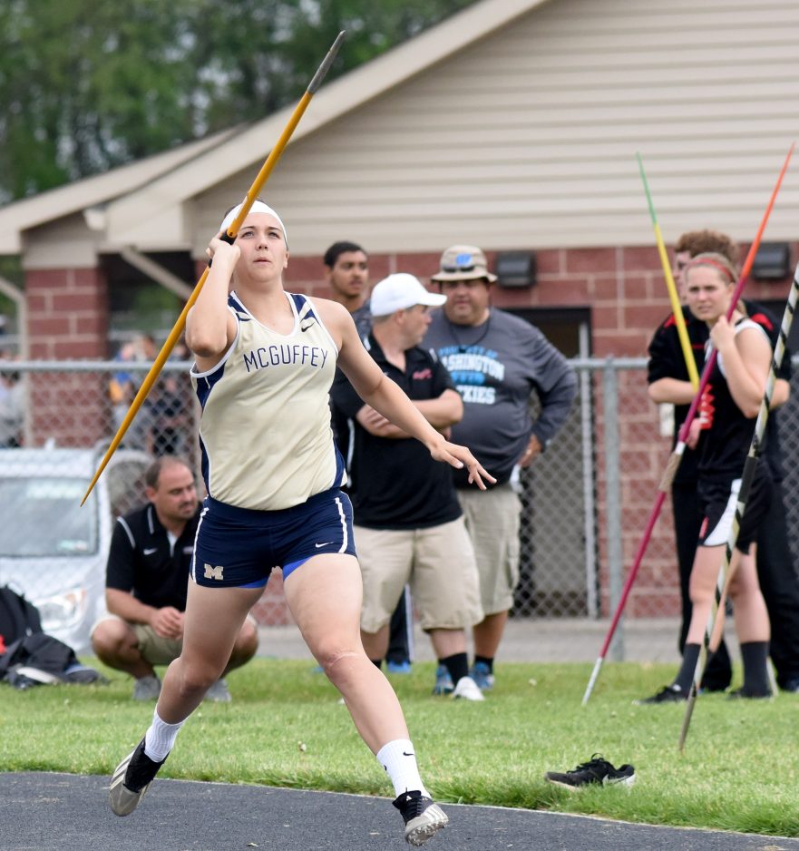 Katie Demi, a senior javelin thrower from McGuffey, suffered her first loss in the event this year but still finished second. Demi threw 122-8, four inches behind Alena Blasczyk of Frazier and 10 feet off her best. She threw 129 at the Chartiers-Houston Invitational.