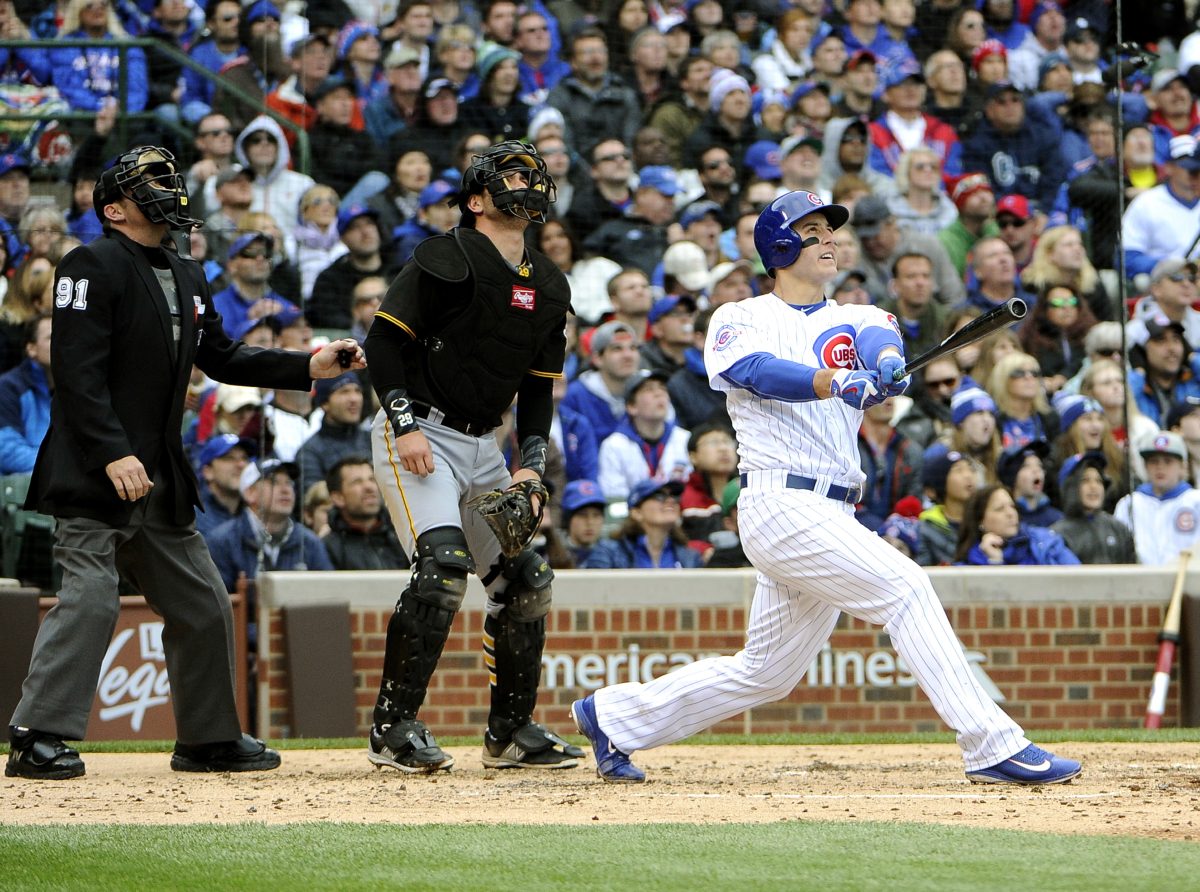 The Cubs then grabbed the lead for good in the bottom half. Heyward singled on a dribbler to second and Kris Bryant walked on a close call on a full-count pitch before Rizzo connected for his 11th homer.