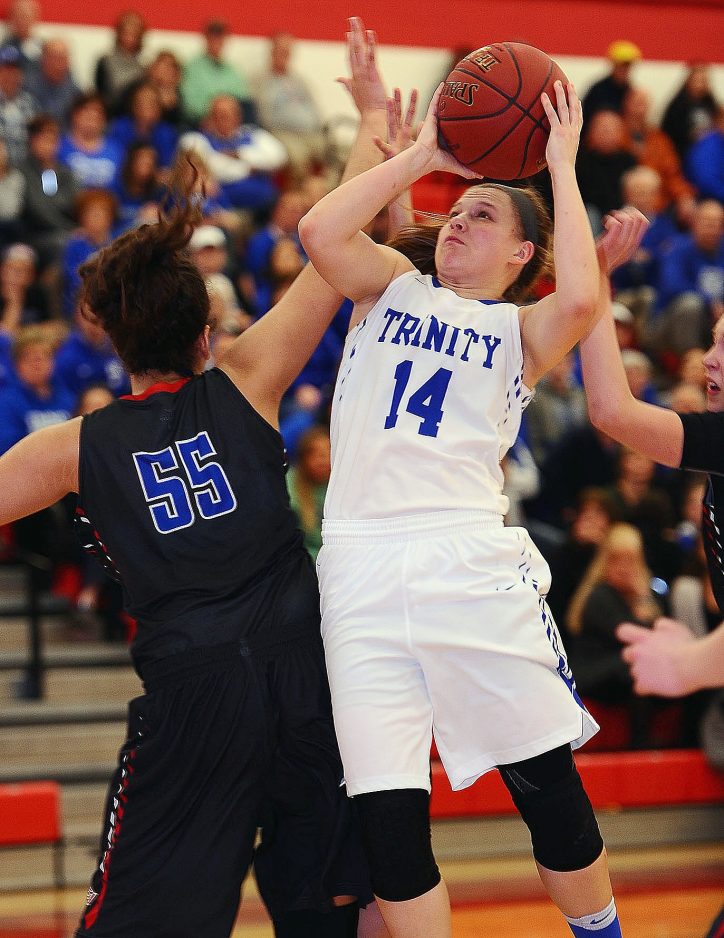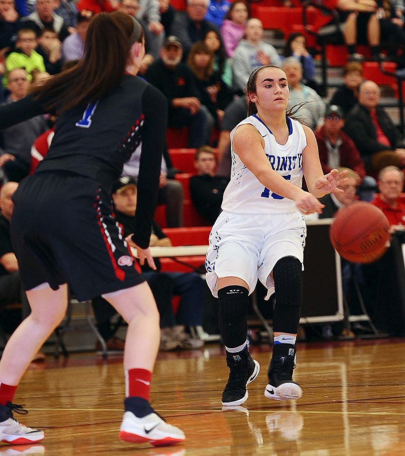The other item was Chartiers Valley’s defense. The Colts shut out Trinity’s high-scoring senior guard Sierra Kotchman. A 19-points-per game scorer, Kotchman did not make a field goal and did not attempt a free throw in 32 minutes.