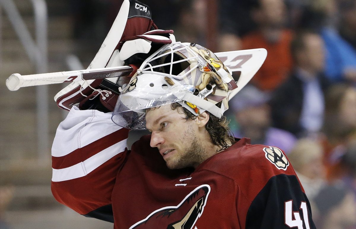 When a collision knocked off Mike Smith’s mask, the Arizona Coyotes goaltender was less than pleased upon being told a few minutes later he had to leave the game.