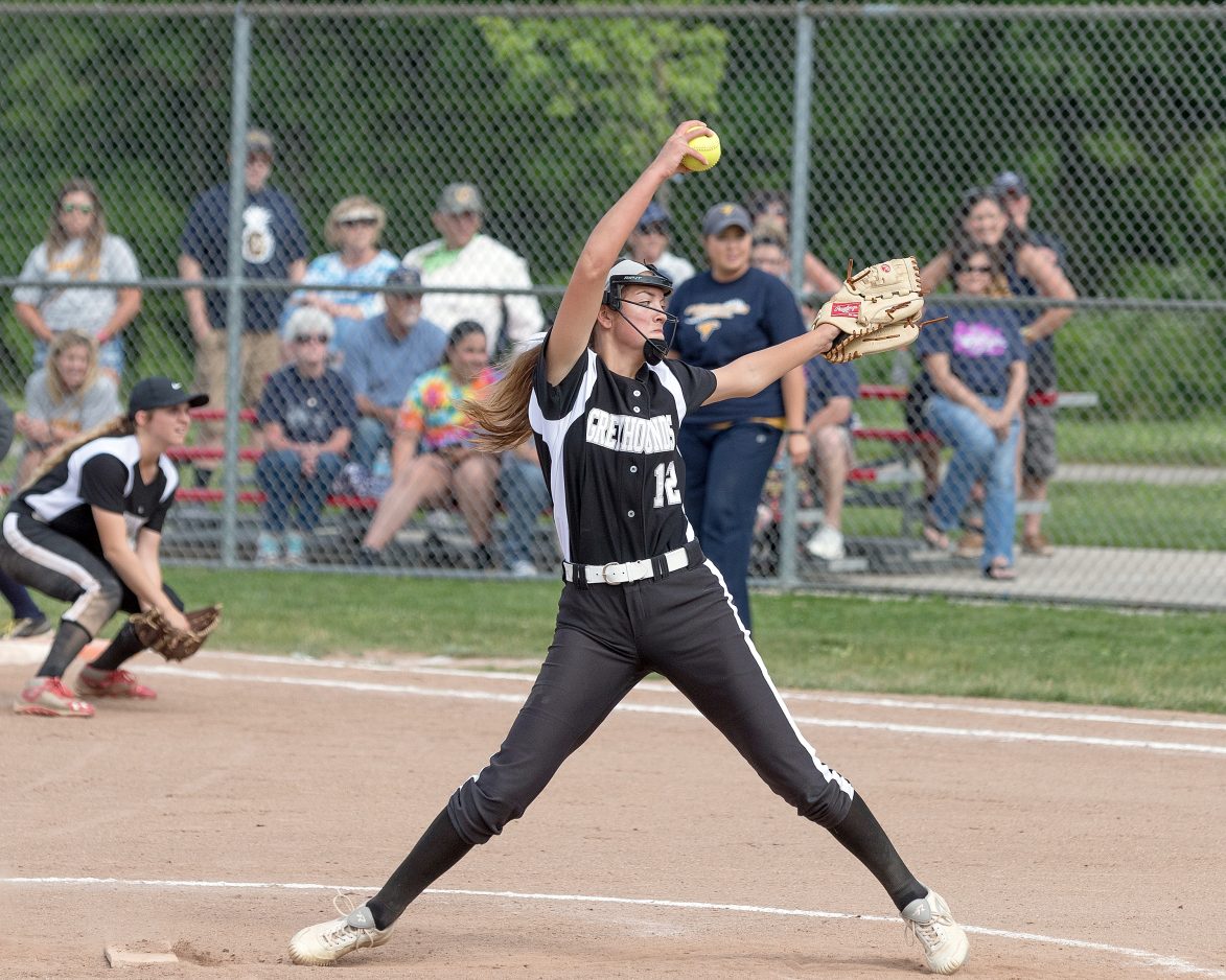 After Vatakis faced only 11 batters over the next three innings, the Greyhounds added two insurance runs, the first on a triple by Destiny Habeck, which scored Janae Evans, who drew a one-out walk to start the inning. Guzzie hit a ground ball to second base to score Habeck to make it 6-0.