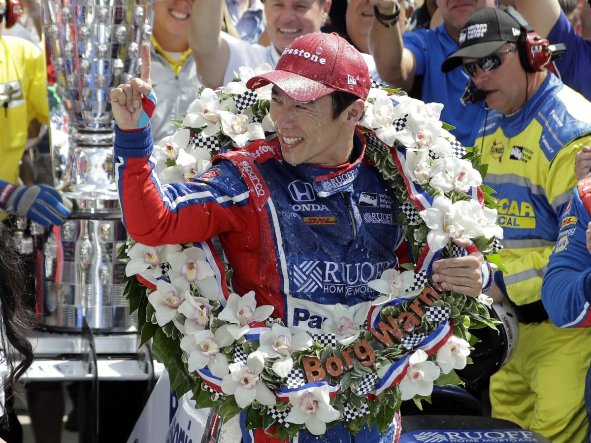 A joyful Sato dumped a bottle of 2 percent milk over his head, received a kiss from the Indy 500 Princess and raised his finger in the air. Michael Andretti ran down pit lane to reach Sato’s crew, then rushed to hug his driver.