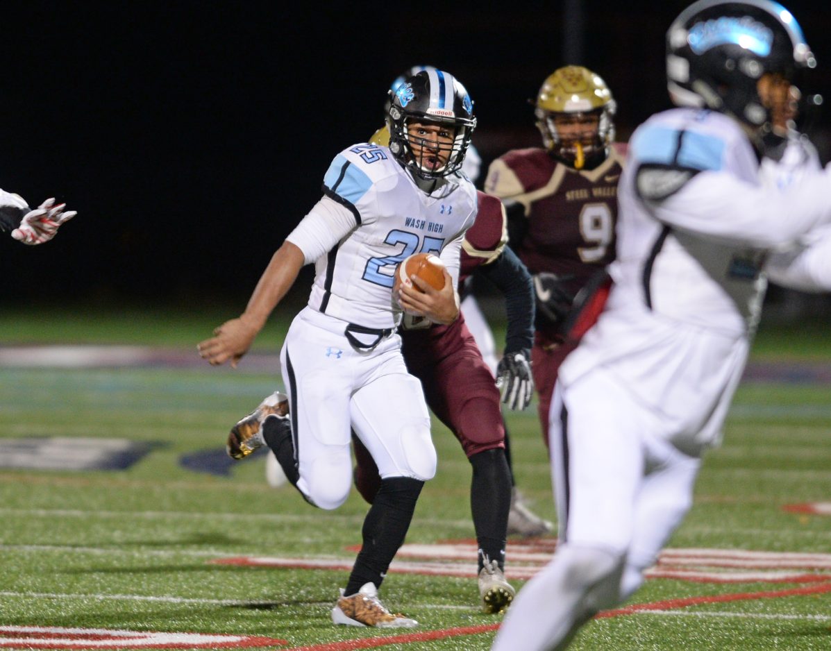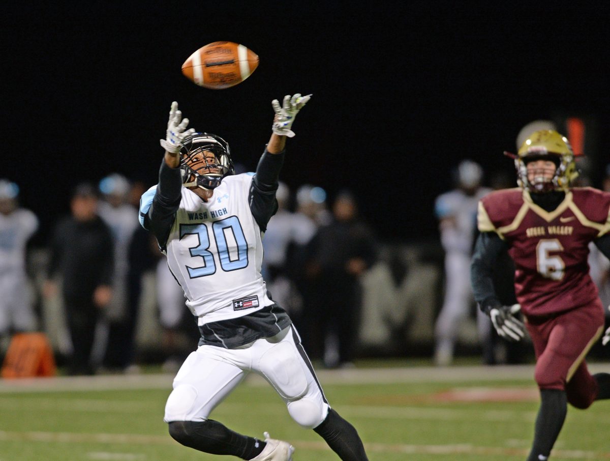 With the game scoreless late in the first quarter, top-seeded Steel Valley methodically moved into Prexies territory and faced a first-and-goal from the 1-yard line. The No. 2-seeded Wash High defense, aided by a Steel Valley (11-1) false start, stood tall to stopped the Ironmen on four straight downs to keep the game scoreless.