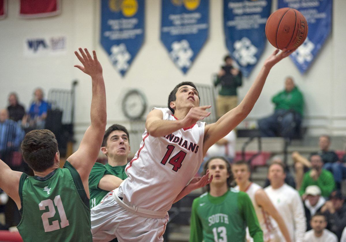 Peters Township’s active 2-3 zone defense harassed the Lions into errant perimeter shots. The Indians were able to clear their defensive board much of the night as the hosts outrebounded the Lions 19-13.