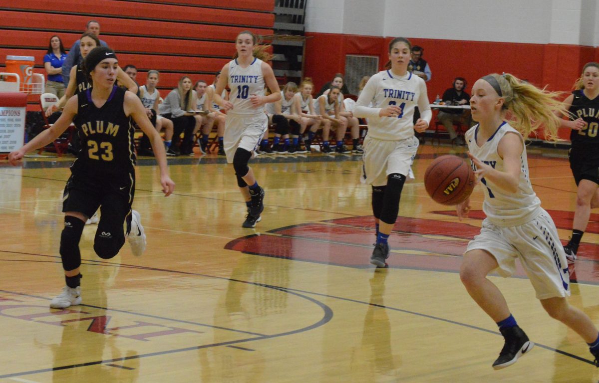 While Trinity (20-3) defeated Plum 60-21 in last season’s first-round playoff game, senior Alayna Cappelli, who scored a game-high 16 points, said the slow start wasn’t because her team was overlooking the Mustangs.