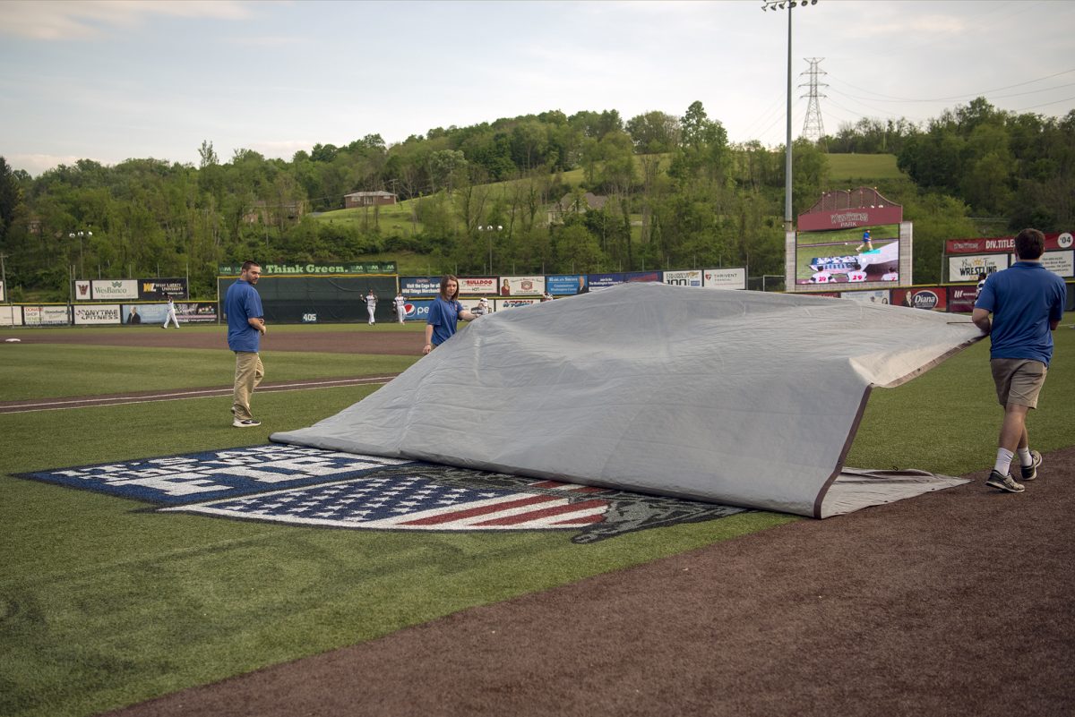 Rain falls in the 5th inning at the Wild Things Opener