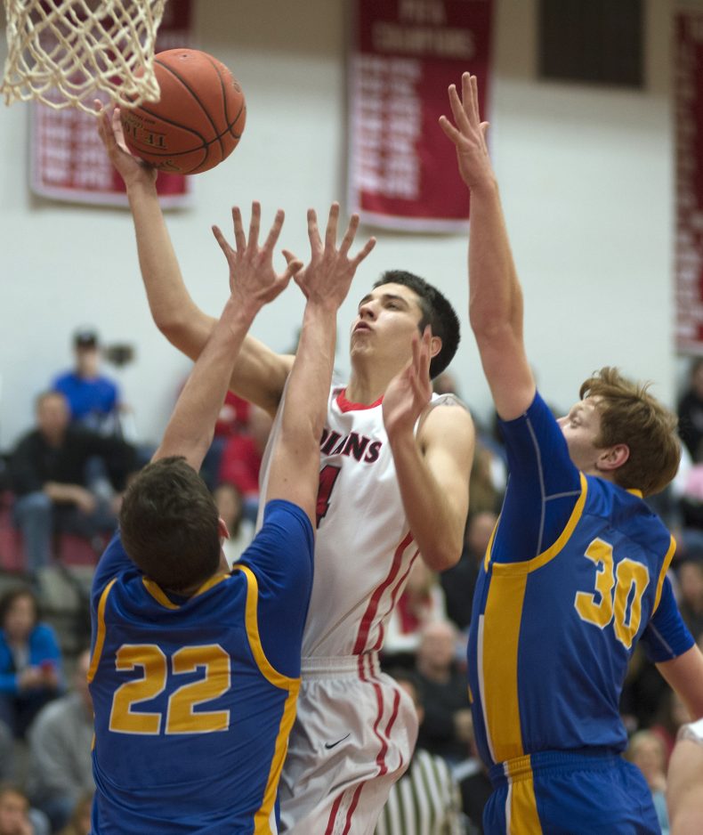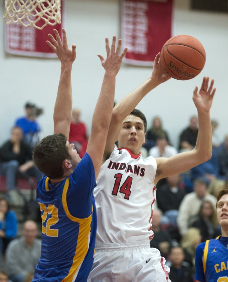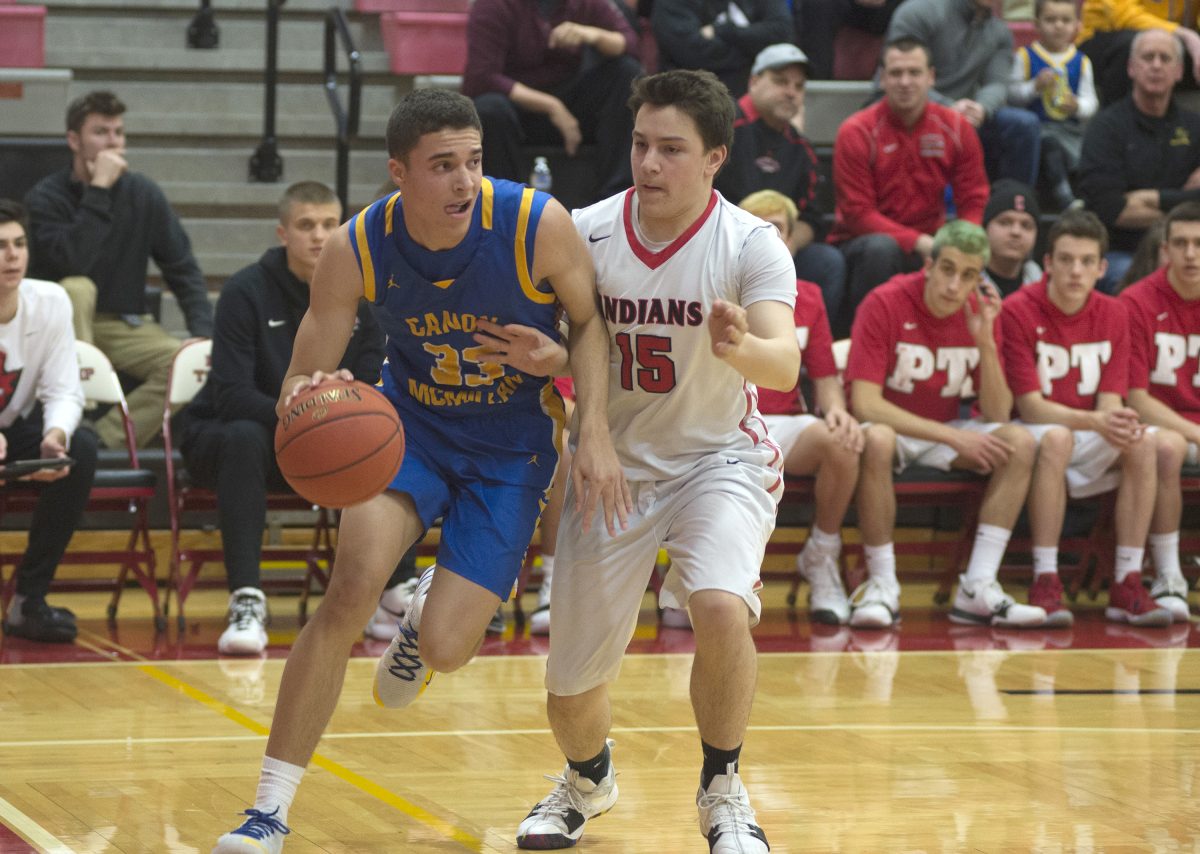 The Melonja-less Indians then succumbed to C-M’s triangle-and-two defense. Playing man-to-man against PT’s two best scorers, Colin Cote and Dax Ploskina, the Big Macs played zone under the basket to limit the pair to 24 combined points. It was the third time in the last five games Peters Township was held to less than 50 points.