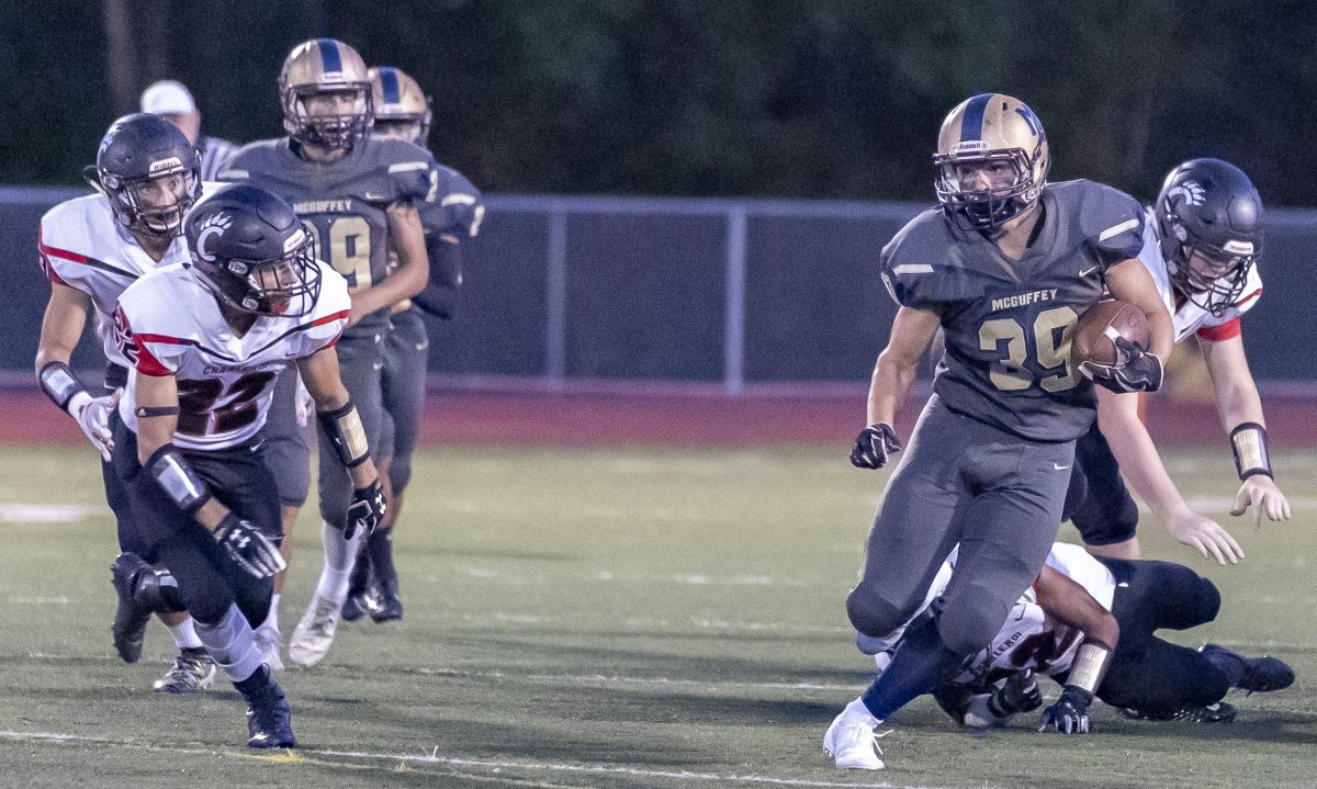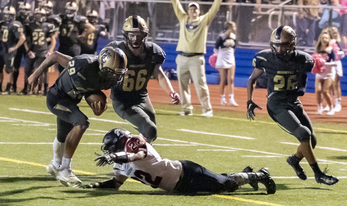Highlighting McGuffey’s final possession was a 43-yard run by Marshall Whipkey, who juked and sidestepped and dodged past seemingly the entire Charleroi defense before finally being knocked out of bounds at the Cougars’ 3-yard line. Two plays later, he scored to seal the win.