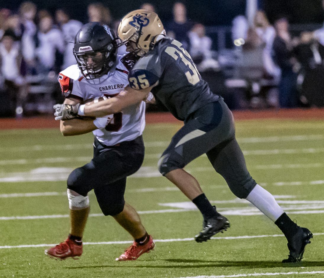 Charleroi (4-2, 5-2), which fell behind 21-0, battled back to within 21-14, making it a one-possession game when Legend Davis hauled in an 8-yard fade from Alex Conrad with 7:18 left in the fourth quarter.