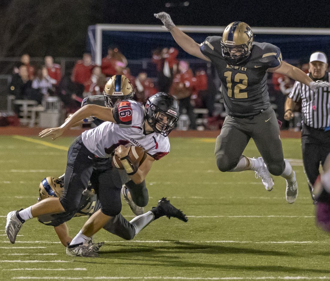 McGuffey (6-0, 8-0) proceeded to fumble the ensuing kickoff, giving the Cougars the ball at the Highlanders’ 34. Dalton called timeout to make a schematic change, as Charleroi had been picking apart the McGuffey defense with a variety of short passes.
