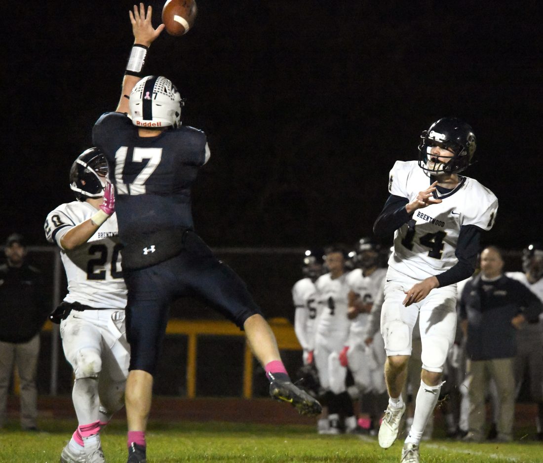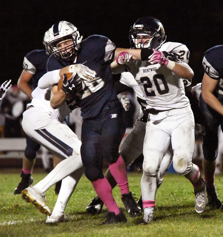 Coming into the game, it was a question of would Burgettstown’s 40-plus point average rule the day or Brentwood’s staunch defense (10 points against on average). And based on Burgettstown’s first drive, the game appeared like it would be a one-sided affair. The Blue Devils (6-0, 8-0) marched 71 yards in seven plays, including a 36-yard Shane Kemper run on the first play from scrimmage, to take a 7-0 lead.