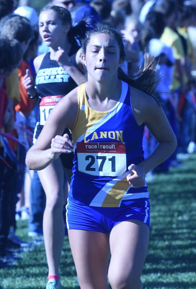 Senior Hailey Poe (20:34) was fifth; freshman Angelina Gabriel (20:42) was seventh; senior Steffanie Kozak (21:26) was 17th; junior Emma Fleck (21:40) was 19th; sophomore Morgan Lukenich (21:57) finished 22nd; and sophomore Gabby Baiano (22:46) crossed 30th.