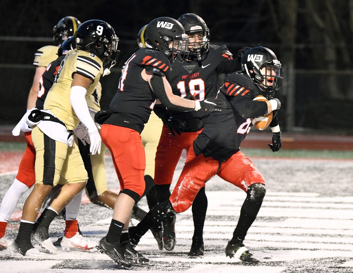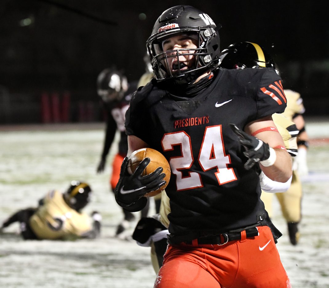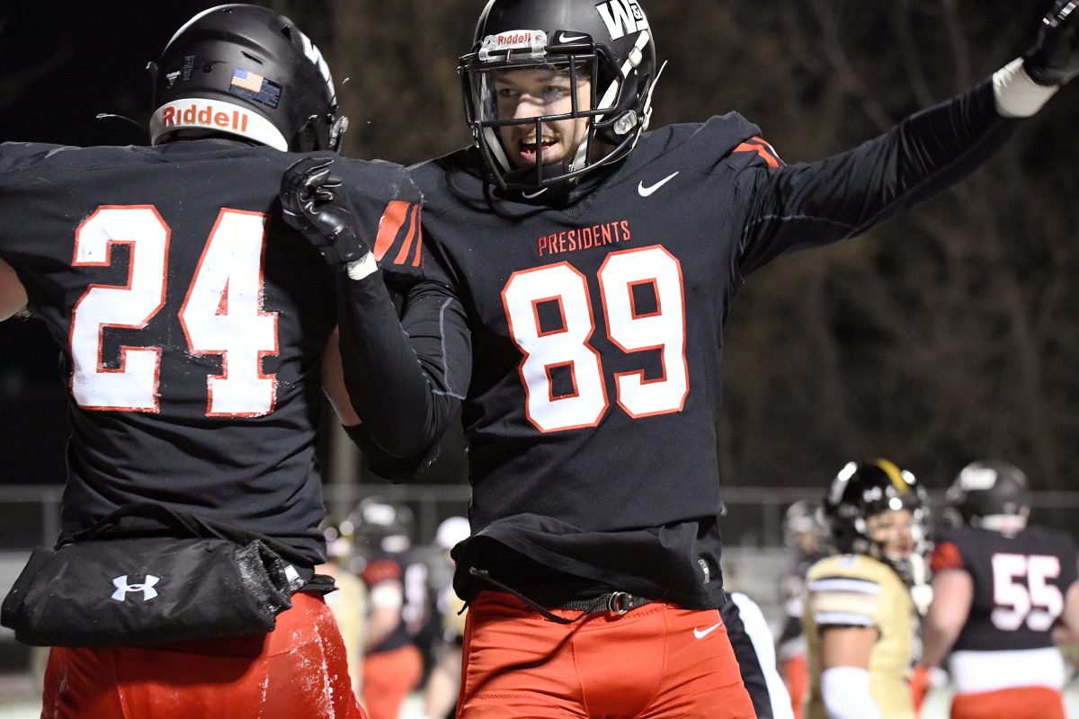 Senor wide receiver Andrew Wolf caught two more touchdown passes, including a 38-yarder with no time on the clock in the first half to help the Presidents grab their second win in as many games, 20-6, over Geneva in a Presidents’ Athletic Conference game on April Fools Day.