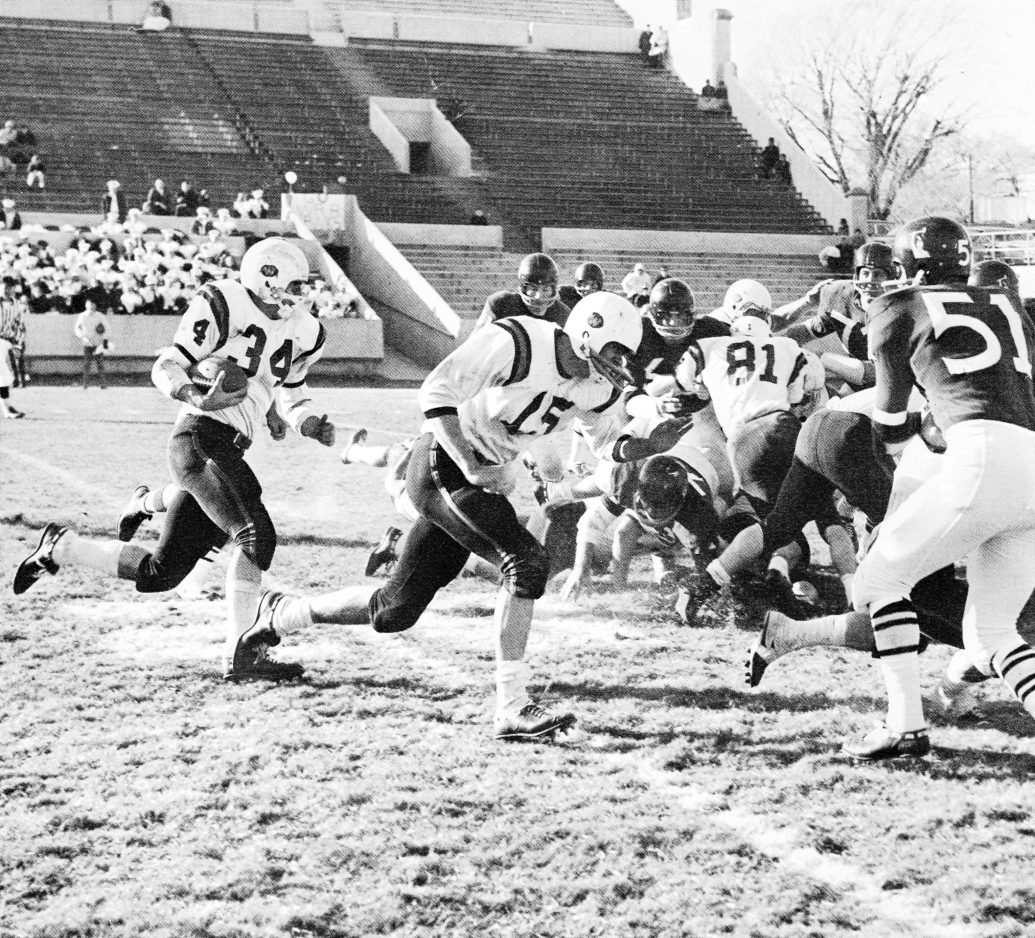 But real life seldom mirrors Hollywood. For the ’66 Jackets, the season’s climactic moment happened two weeks before the championship, against New Mexico Highlands.