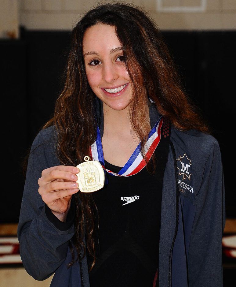 That didn’t stop Ella Menear from putting Mapletown on the swimming map when she won the school’s first state title in any sport. The sophomore won the gold medal when she finished first with a time of 54.99 in the 100-yard backstroke during the PIAA Class 2A Championships. Menear also earned a bronze medal in the 200 individual medley in 2:05.64.