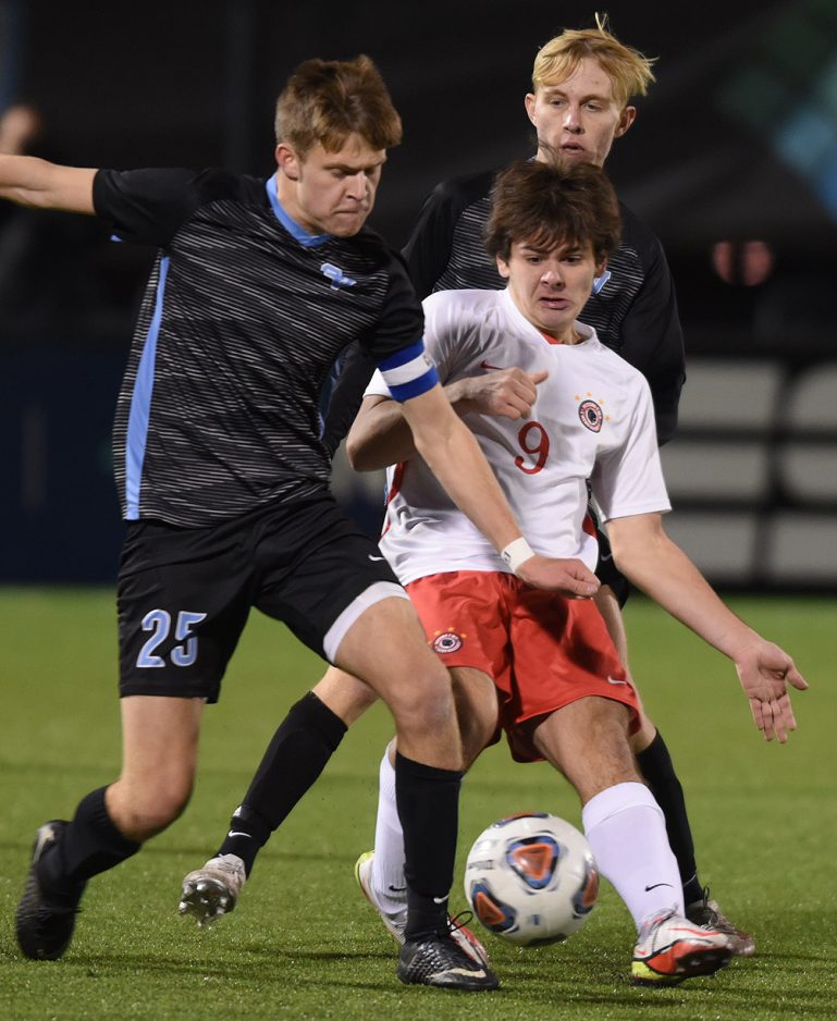 Few teams have prevented Andrew Massucci from scoring. The WPIAL Player of the Year and All-State performer made the contest interesting when he put the Indians on the scoreboard. His goal with 7:11 left in the first half closed the gap, 2-1.