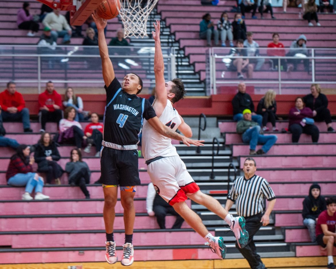 Washington’s Tayshawn Levy scores against Charleroi’s Will Wagner.
