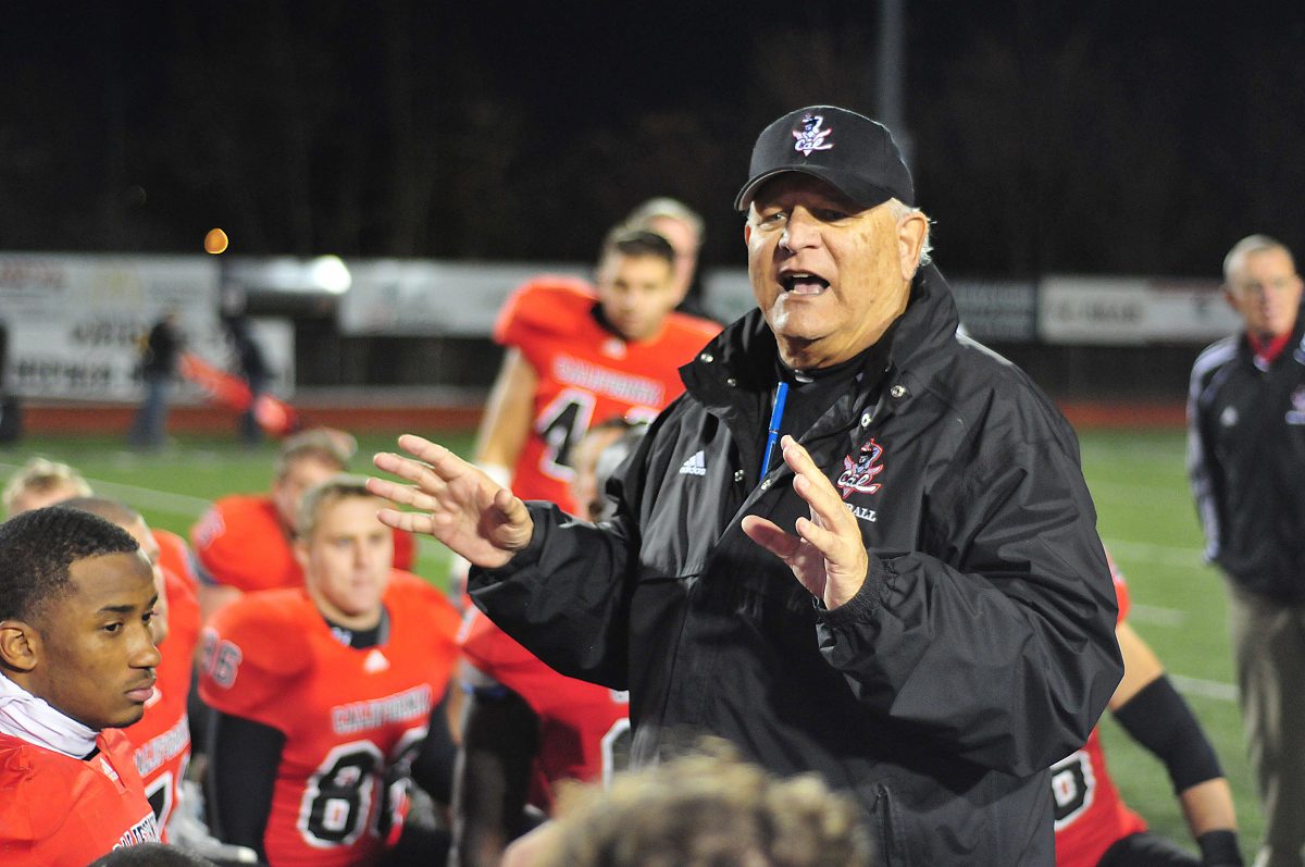 Or should he wear the football cap of California University, where he coached for from 2002-2011, amassed an 88-33 record and made two appearances in the NCAA Division II semifinal game?