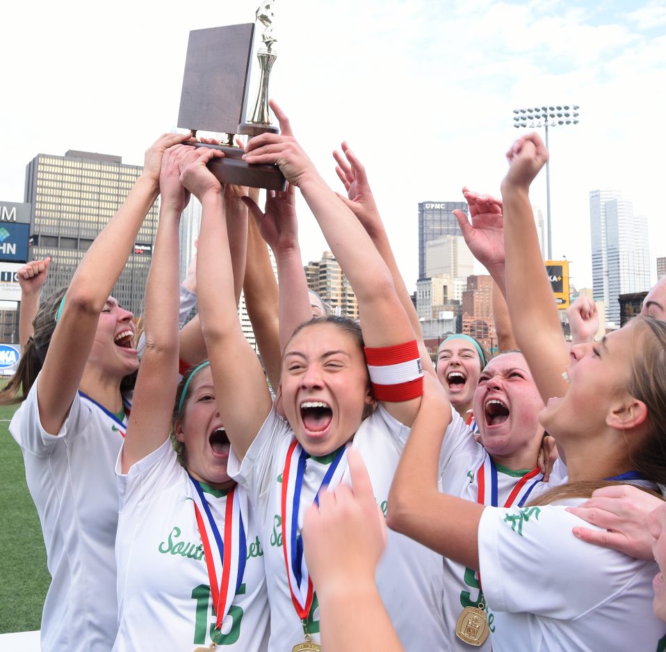 South Fayette boys soccer has seen its fair share of action in the WPIAL soccer championship finale, as the program won its 19th title Saturday at Highmark Stadium in Pittsburgh, but the girls team earned its first district gold in a double-overtime victory for two championships in one day for the Lions.